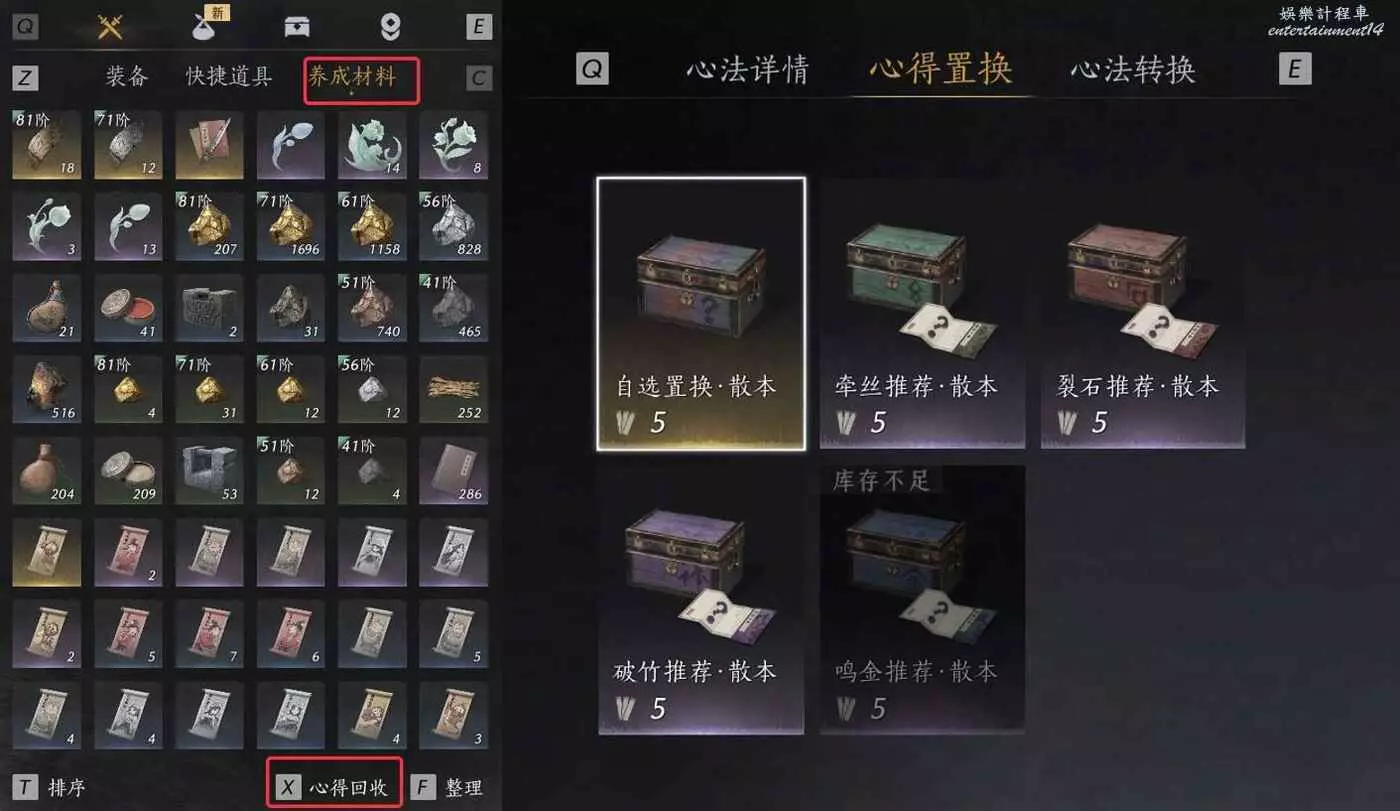 使用方式:心得置換頁面,5書票可兌換一個心法心得箱子。