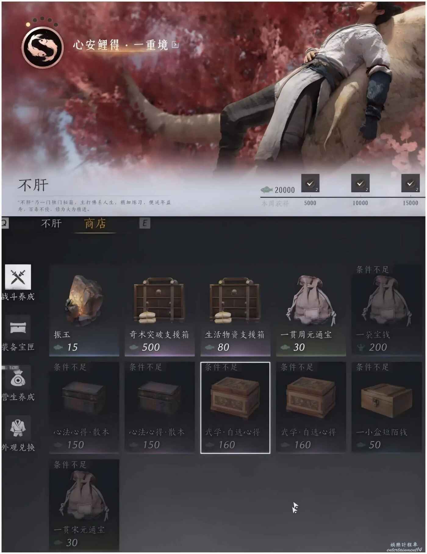 使用方法:兌換不肝商城中的商品,推薦兌換的重點商品有——生活物資支援箱、振玉、裝備、營生手記、營生禮盒、心法心得、武學心得、一小盒短陌錢