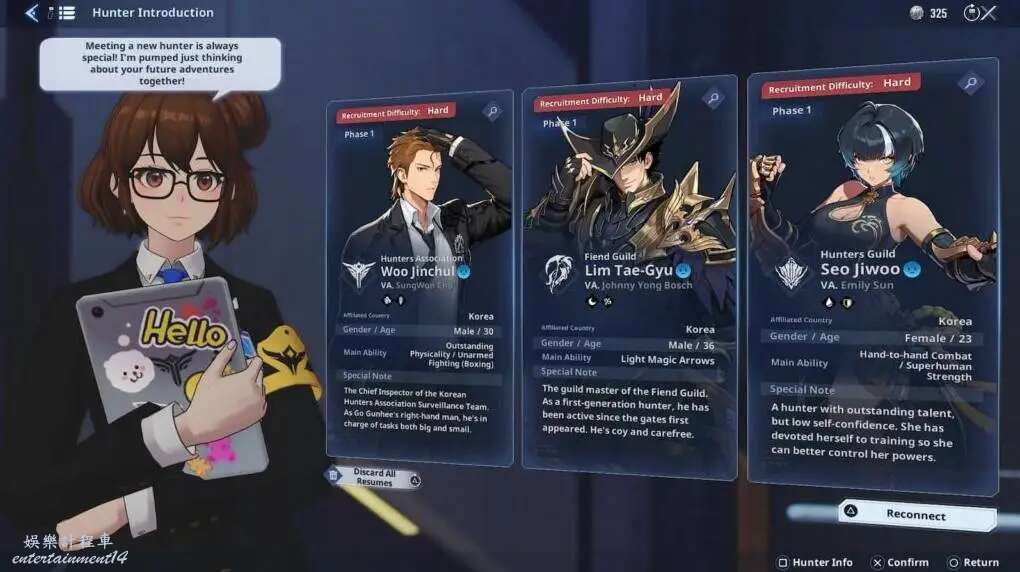 雖然您將通過推進劇情獲得上述獵人,但遊戲中的其他所有獵人都必須通過在第4章解鎖的招募機制獲得。要招募角色,請走到大廳底層與林河今交談。這將引導您進入一個螢幕,您將獲得三個完全隨機的選項,可以選擇招募誰加入您的團隊。