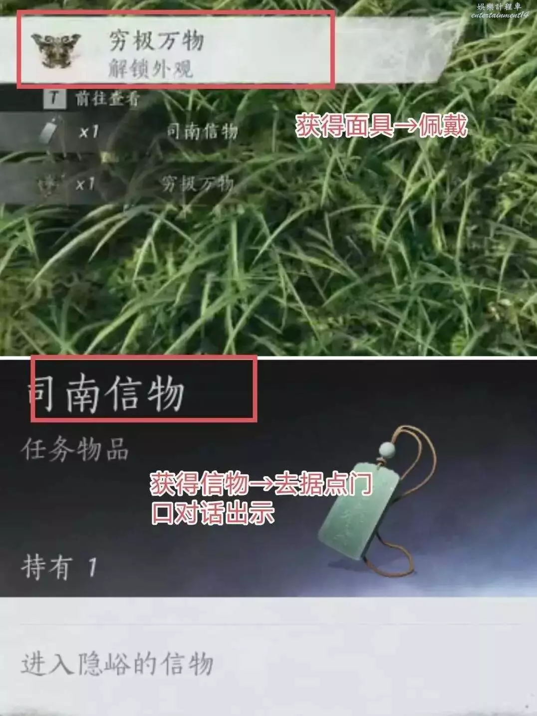 獲得之後戴上面具就可以去據點門口對話,直接進入,順便獲得成就【大人叫我來巡山】
