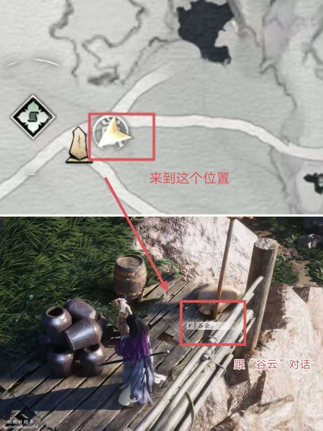 來到下圖位置觸發任務指引,找到谷雲並對話,然後根據指引找到昏迷的窮奇師→獲得面飾【窮極萬物】
