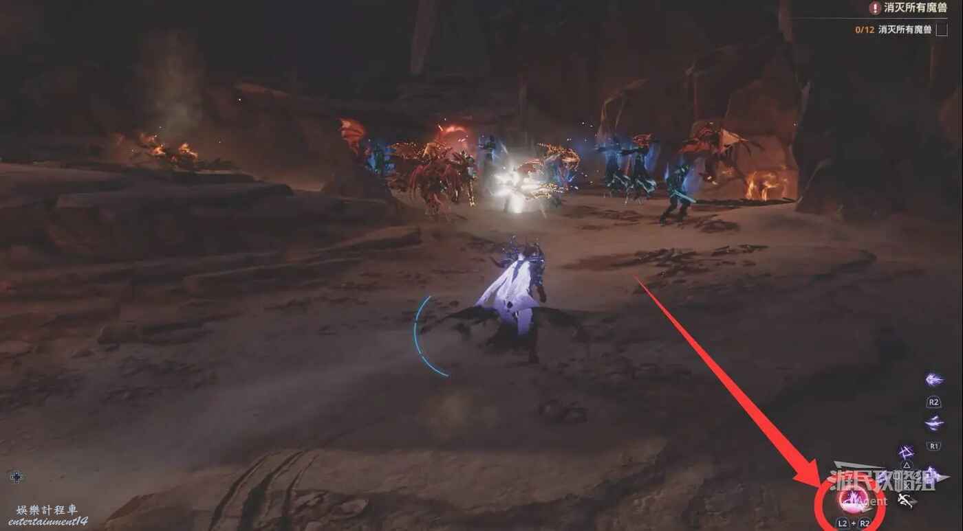 往前走,遇到大量魔獸,待究極技累積滿,使用究極技可大範圍殺傷敵人。