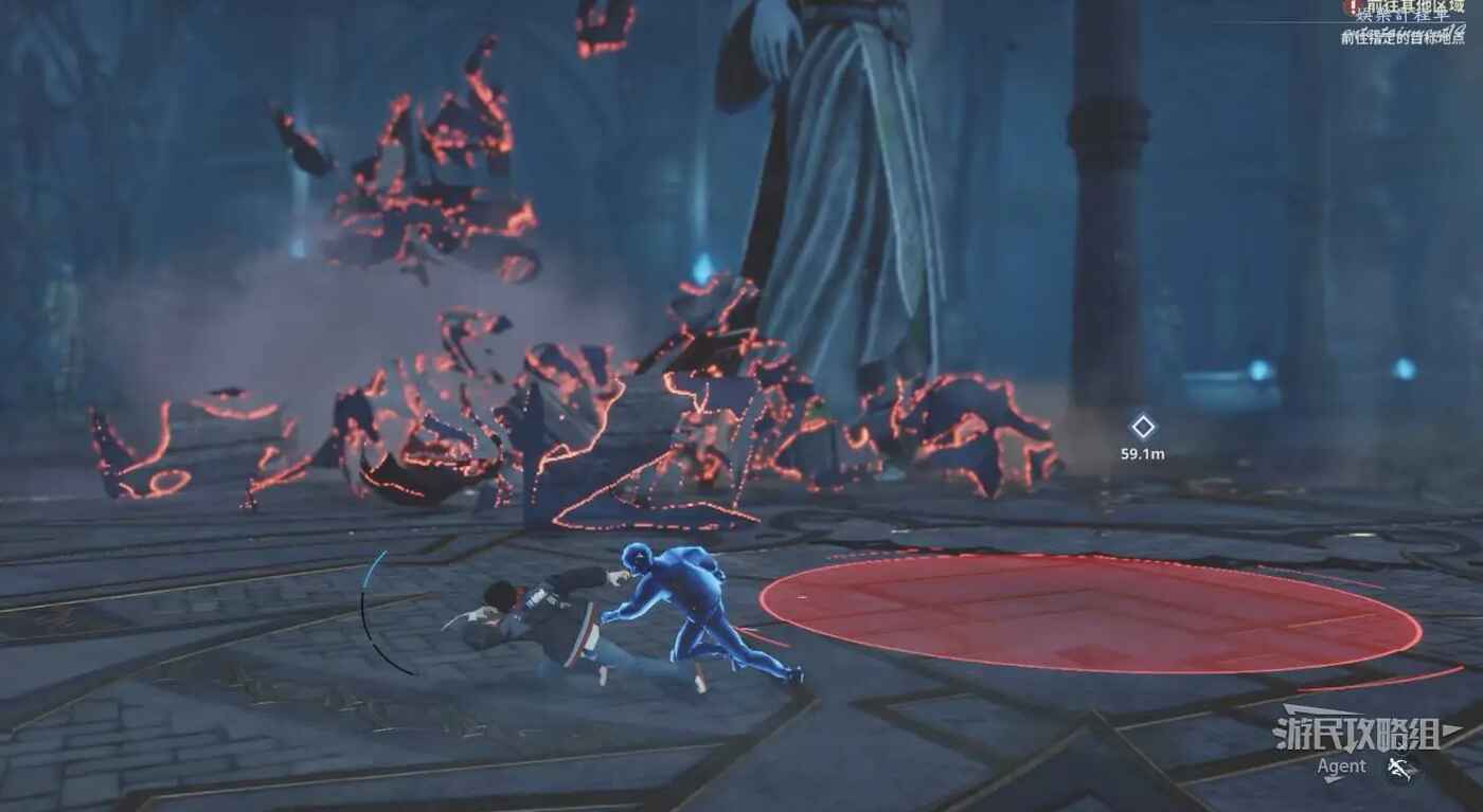 巨型神像劇情後,注意避開紅色區域,以躲避巨型神像的攻擊。