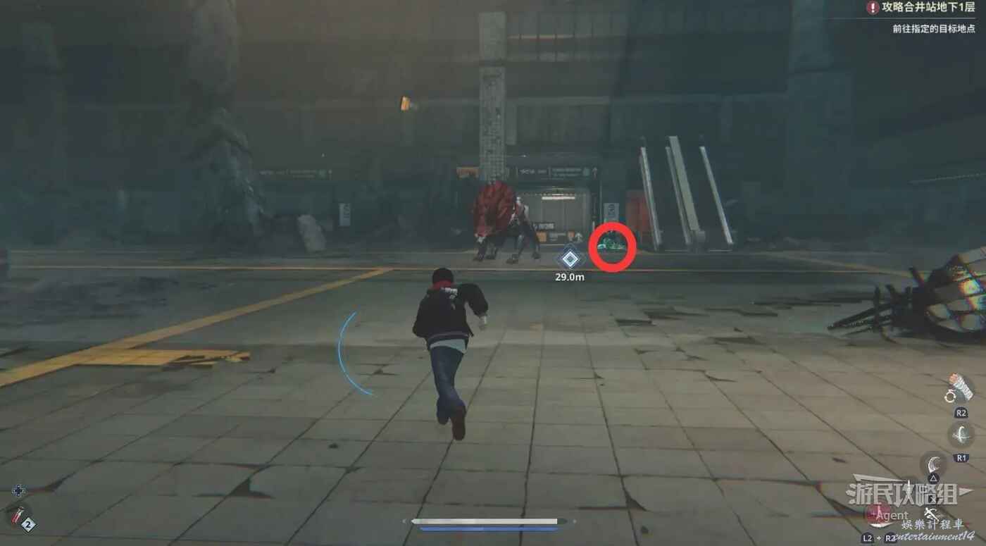 躲避一會兒後,螢幕上就會出現目標地點指示,迅速跑過去觸發劇情。劇情後選擇“接受”成為玩家。