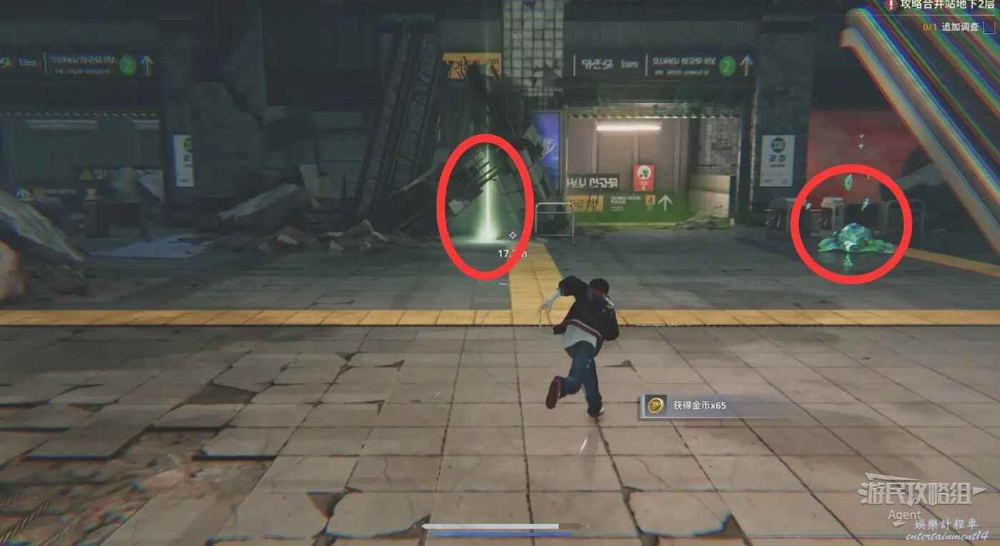 來到地鐵站,解鎖藥品用於回血。注意地圖上經常會遇到發光的礦石,打碎會掉落道具。
