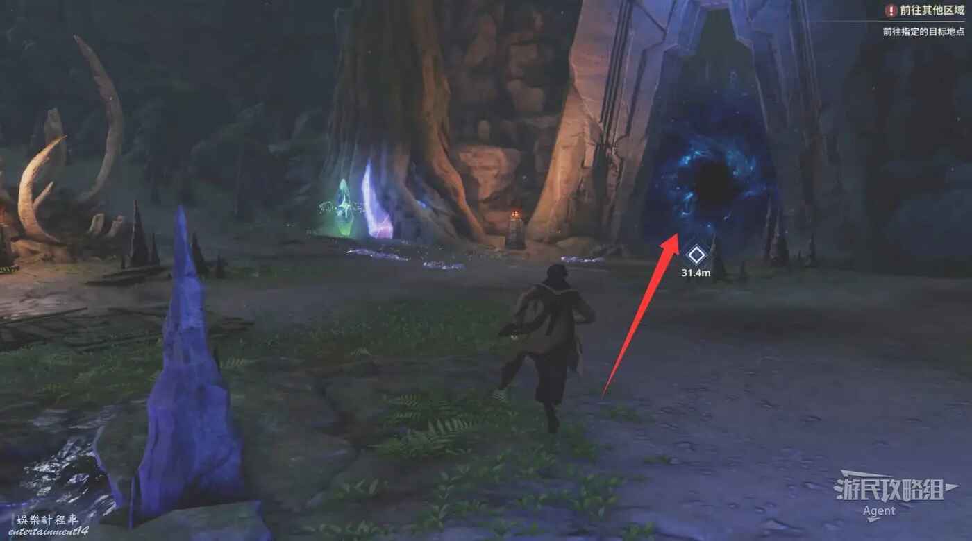 擊敗蜘蛛隊長後,啟動記錄石,然後靠近目標標記處的屏障會有“移動”提示。