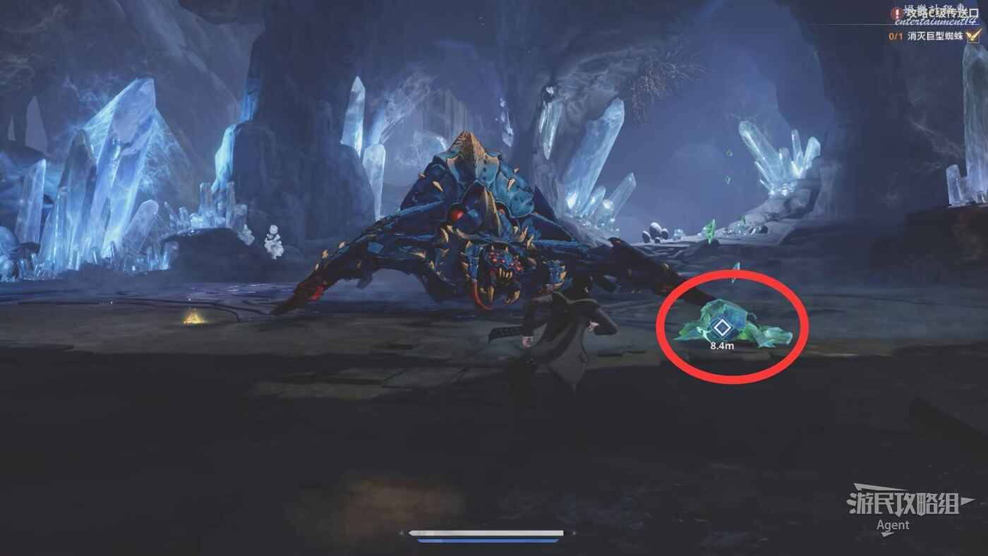 調查周圍三處發光點,消滅蜘蛛後打巨型蜘蛛。