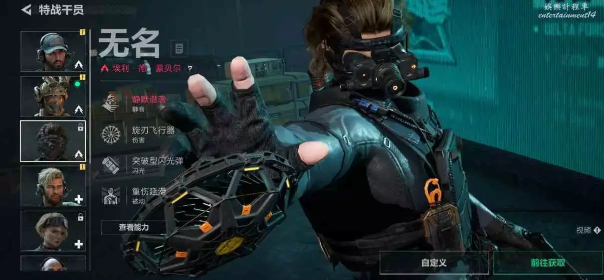 靜默潛襲(終極技能):開啟後進入潛行狀態,大幅降低移動聲音並不再留下腳印,同時免疫各類偵察設備的探測,是實現完美潛入的核心。