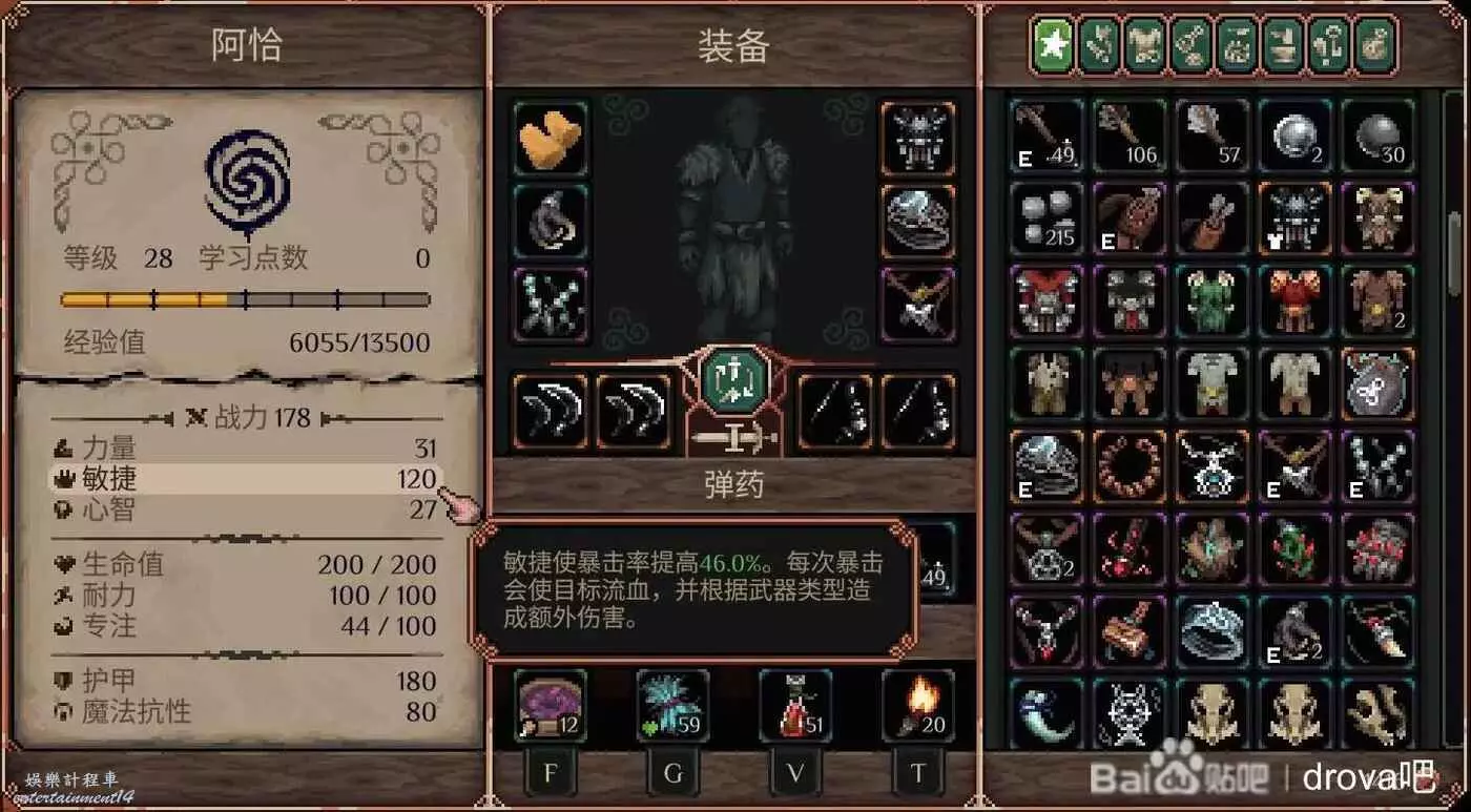3.第4章做完藥水、箭矢後洗點,補去敏捷(上限130,50%爆擊率)