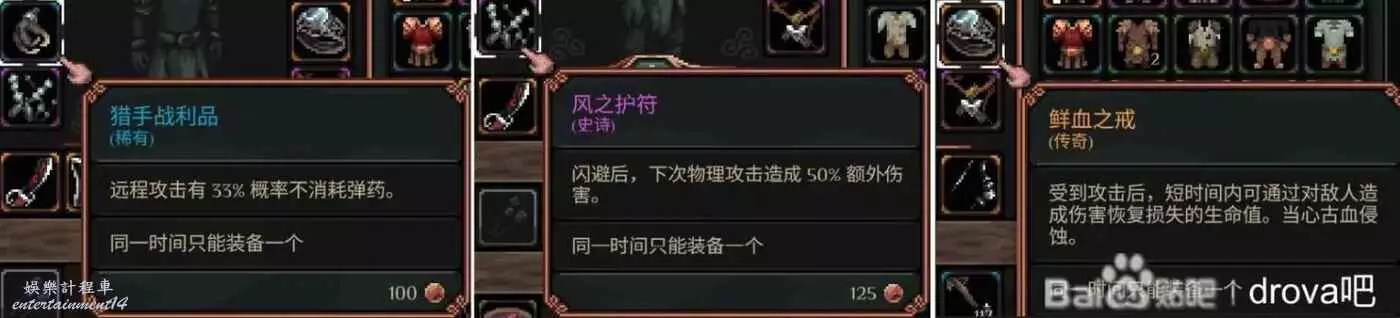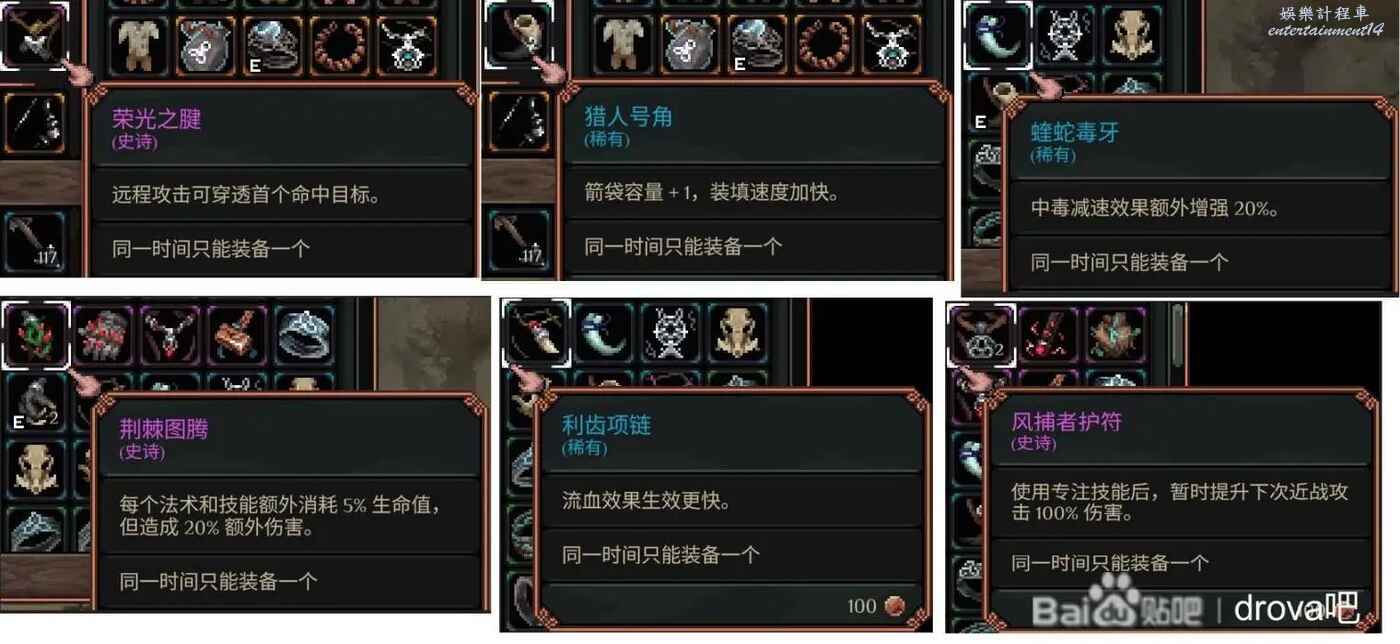 護甲:傳說輕甲一擇,5次閃避既可保命拉距離又能增傷,中期10%爆擊率的盜賊護甲也可考慮