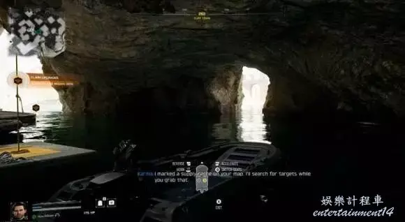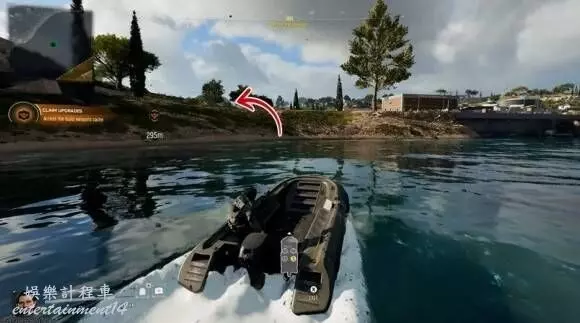 領取武器升級:卡瑪為你找到了新的武器。在碼頭邊找到戰術橡皮艇,這是目前前往目標點最快的方式。沿河道前進,經過兩座橋後,建議在第二座橋後靠岸,盡可能接近目標點。