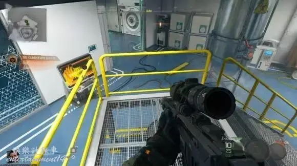 解除門鎖:摧毀機槍塔後,向右轉,通過窗戶射擊另一個能量細胞,即可開啟被力場保護的門。
