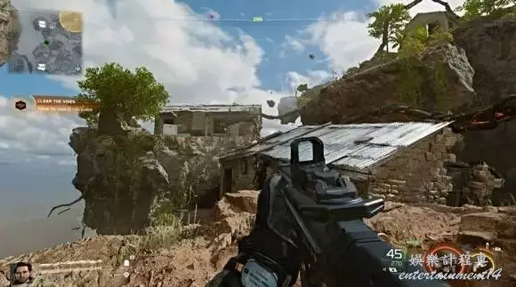 任務從一片海灘開始,過場動畫結束後,直接朝向目標點前進。