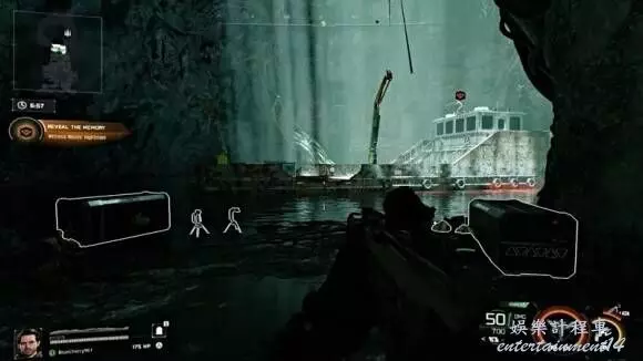 開啟集裝箱:完成後,船上的集裝箱藤蔓會消失。返回船艙甲板並打開集裝箱。隨之而來的過場動畫顯示伍茲並不在裡面。然而,在Specter One制定下一步行動之前,新的幻覺再次襲來。