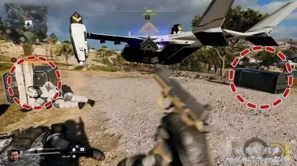 追擊公會VTOL:使用動能跳躍增加跳躍高度,滑翔前往地圖上標記的公會VTOL降落地點。VTOL周圍有少量公會士兵,建議先清理他們,並檢查降落點旁邊的兩個補給緩存。