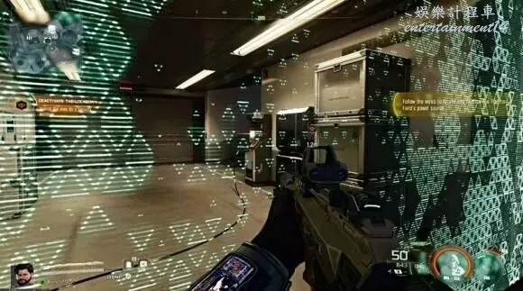 破壞細胞:從屏障右側的窗戶翻越進去,進入安保控制室。室內電纜的終端是一個橙色發光的能量細胞,用武器將其破壞即可解除屏障。