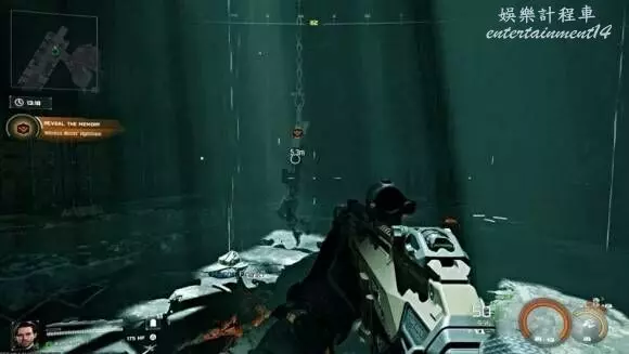 逃離設施:你必須跟隨目標標記尋找出路,這個目標相當簡單且是線性的。你只需要確保不要在某個地點停留太久或者掉下去。因此,算好你的跳躍時機並跟隨目標標記。這將觸發一個過場動畫,你和你的團隊在遠離下沉平台的水面上浮出。