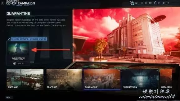 本任務是戰役初始關卡,玩家需潛入公會設施奪取量子驅動器,最終與BOSS梅南德斯對決。流程包含清剿區域、解謎、防禦戰鬥與BOSS戰,建議優先利用場景中的武器箱與補給