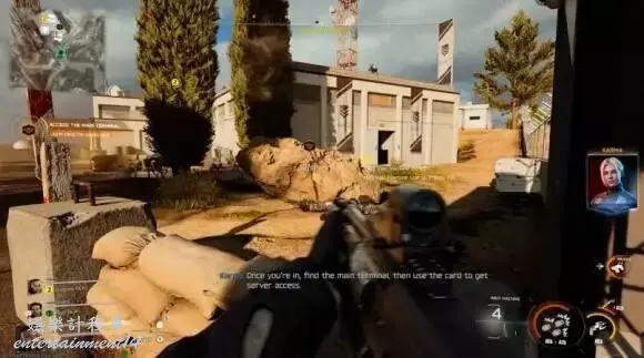 初始敵人與潛入:到達第一棟建築後,會在入口處遭遇多名敵人。他們尚未察覺你的存在,因此可以選擇正面交鋒或潛行繞後。
