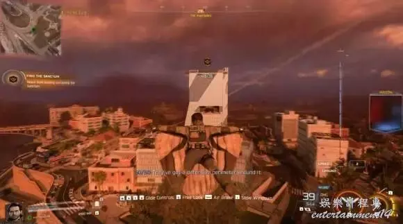 任務起始與滑翔:任務初始目標是根據HUD提示,抵達安全屋並裝備自己。你將從一處高點開始,盡可能地向下一個目標標記點滑翔前進。