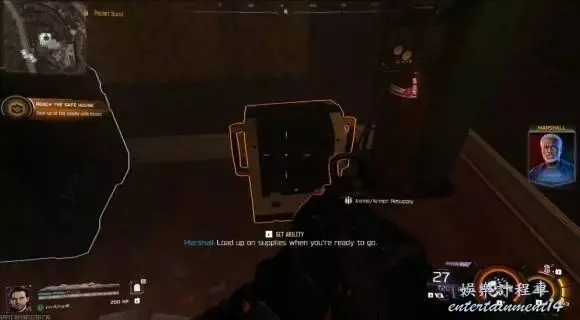 進入電梯:電梯門打開後,迅速進入。但敵人不會停止進攻,他們會開始跳到電梯頂部。保持你的準星對準他們可能出現的方位,射擊任何跳上電梯的敵人。