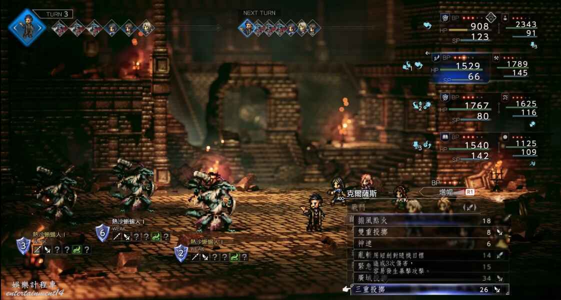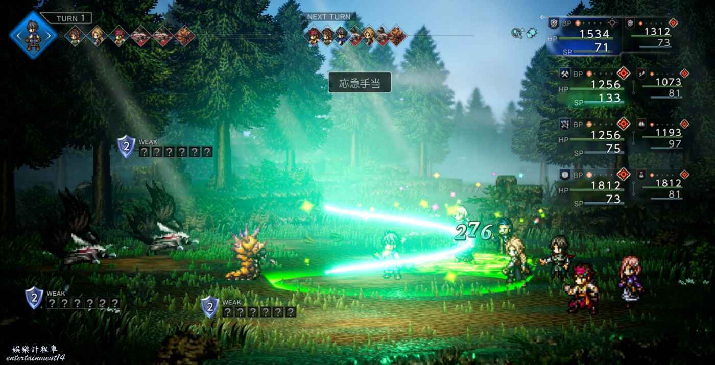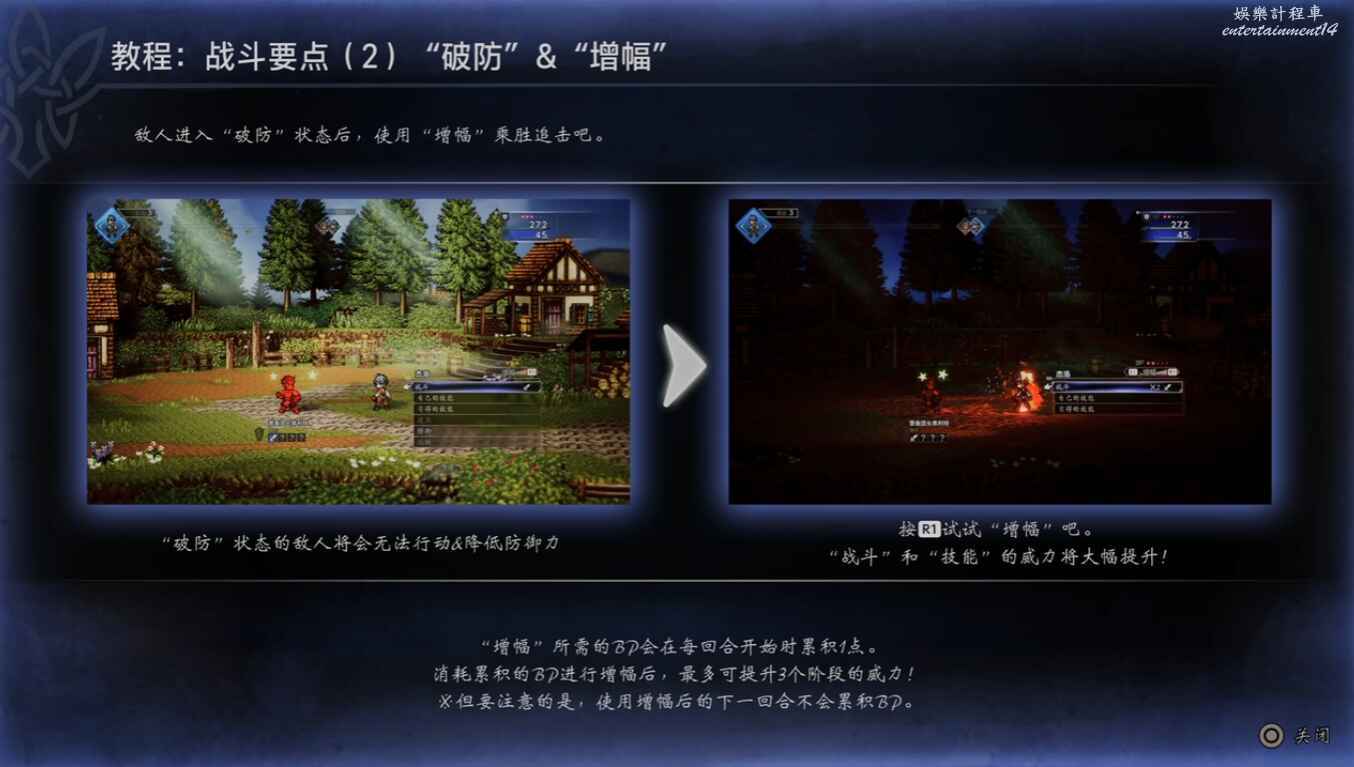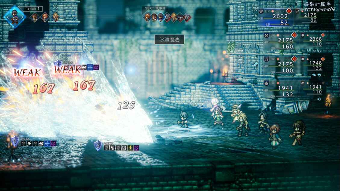 第二點即是八方旅人特有的接豆系統,即每回合我們固定會獲得一點增幅點,靠一回合內使用單個或者複數個增幅點,來提高自己得攻擊力,一般情況下,我們在探出敵人弱點並打出破防狀態後,即可立刻針對敵人弱點使用增幅點,實現一次造成特大傷害的目的。