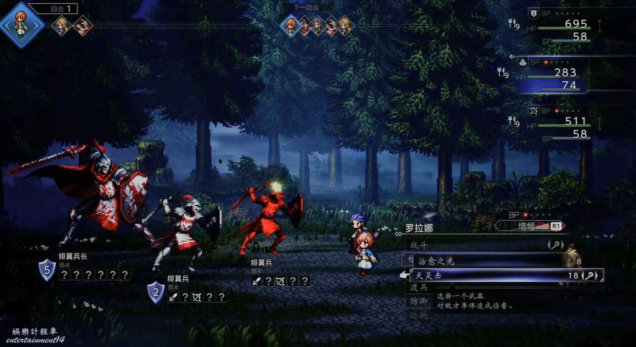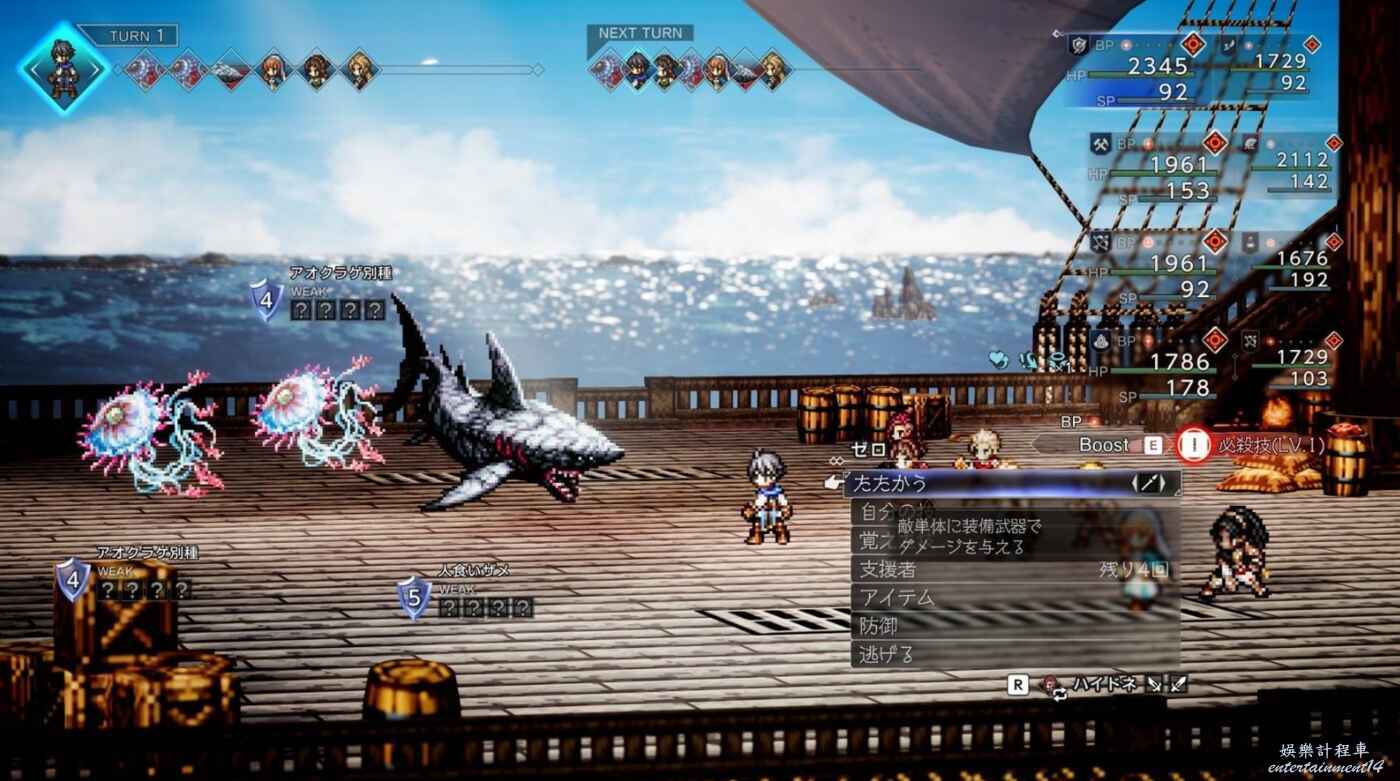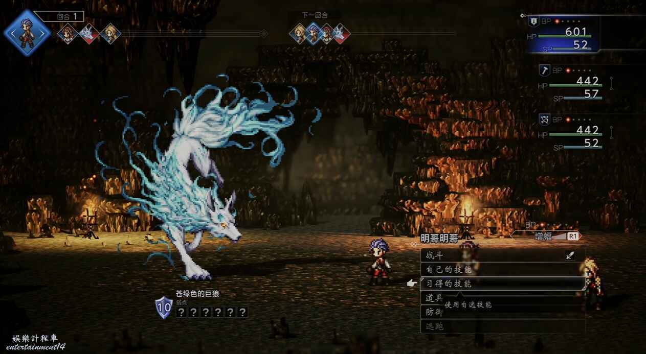 第二點即是八方旅人特有的接豆系統,即每回合我們固定會獲得一點增幅點,靠一回合內使用單個或者複數個增幅點,來提高自己得攻擊力,一般情況下,我們在探出敵人弱點並打出破防狀態後,即可立刻針對敵人弱點使用增幅點,實現一次造成特大傷害的目的。