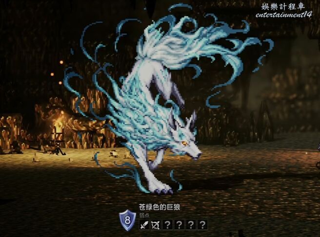 一路前進到青燃石位置後,會有一頭青綠色的巨狼擋在我們和青燃石之間,他就是本任務的關底頭目