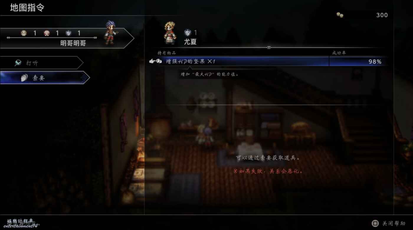 這裡遊戲中又延伸出一個新的系統,我們可以跟任何npc打聽消息,或者索要物品,而不管是打聽消息的成功幾率還是索要東西的成功幾率,都會受到好感度影響,如果索要失敗則會掉大量好感度
