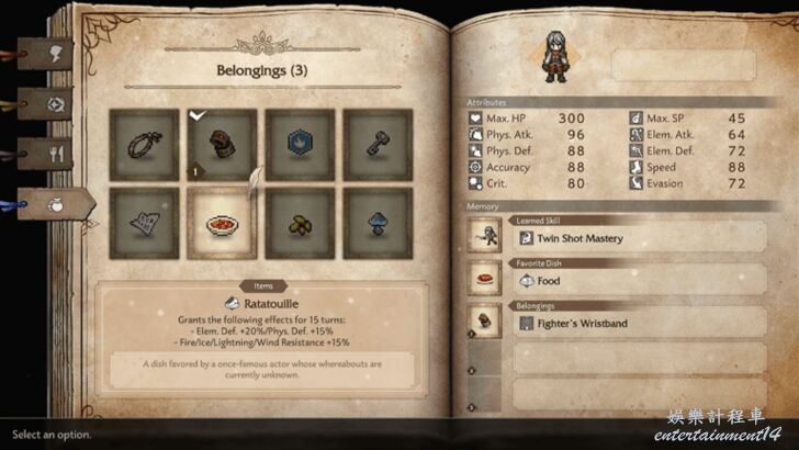 你的選擇決定了冒險初期就能使用的道具,從而影響早期的遊戲風格與策略。