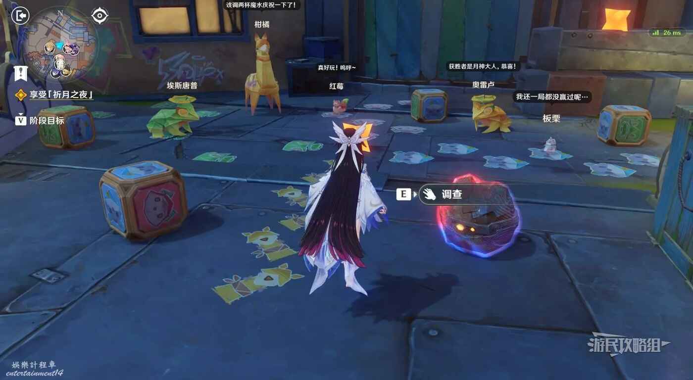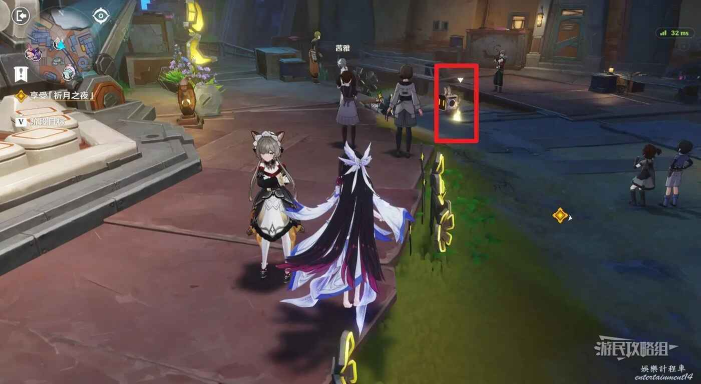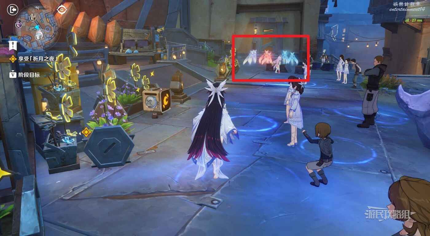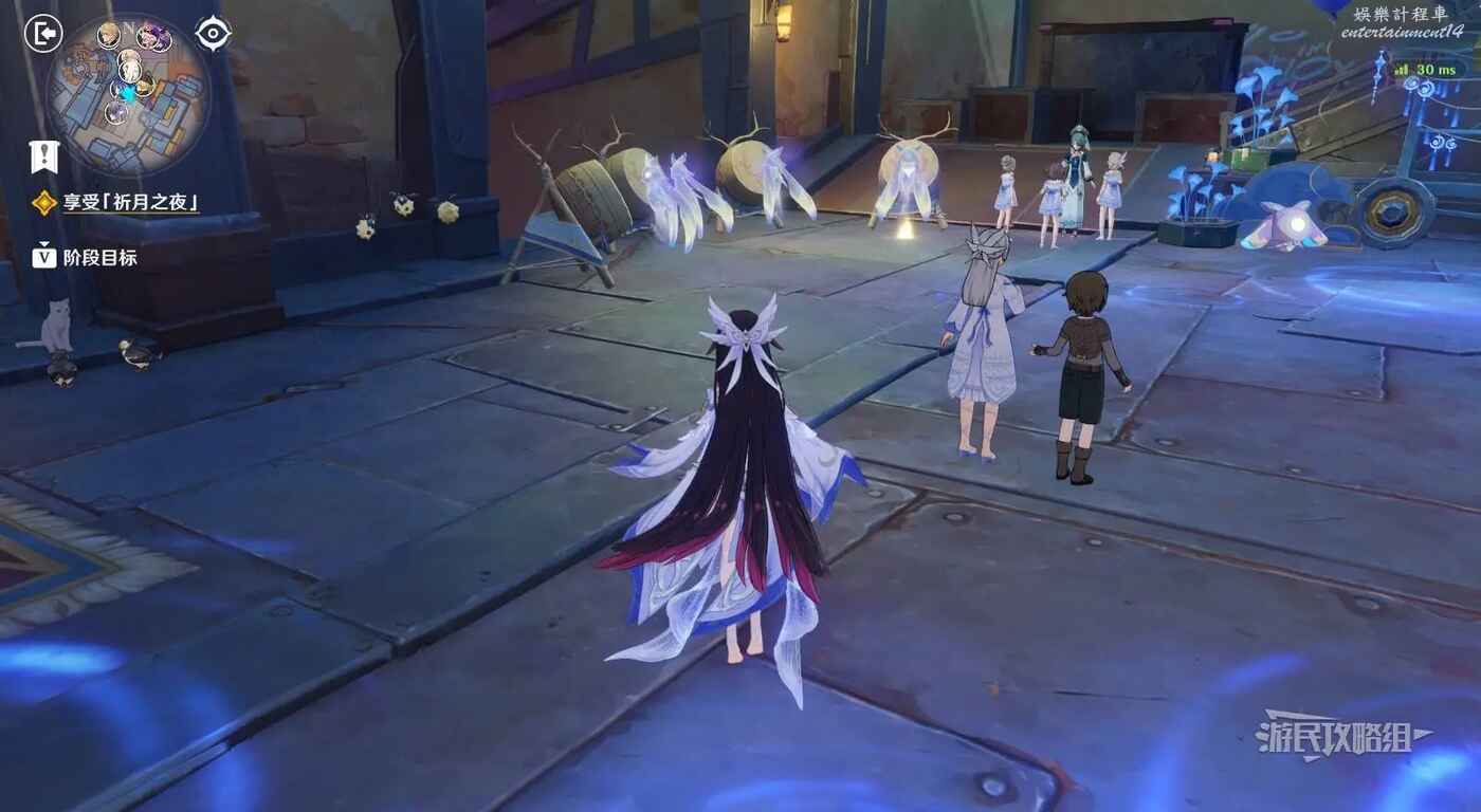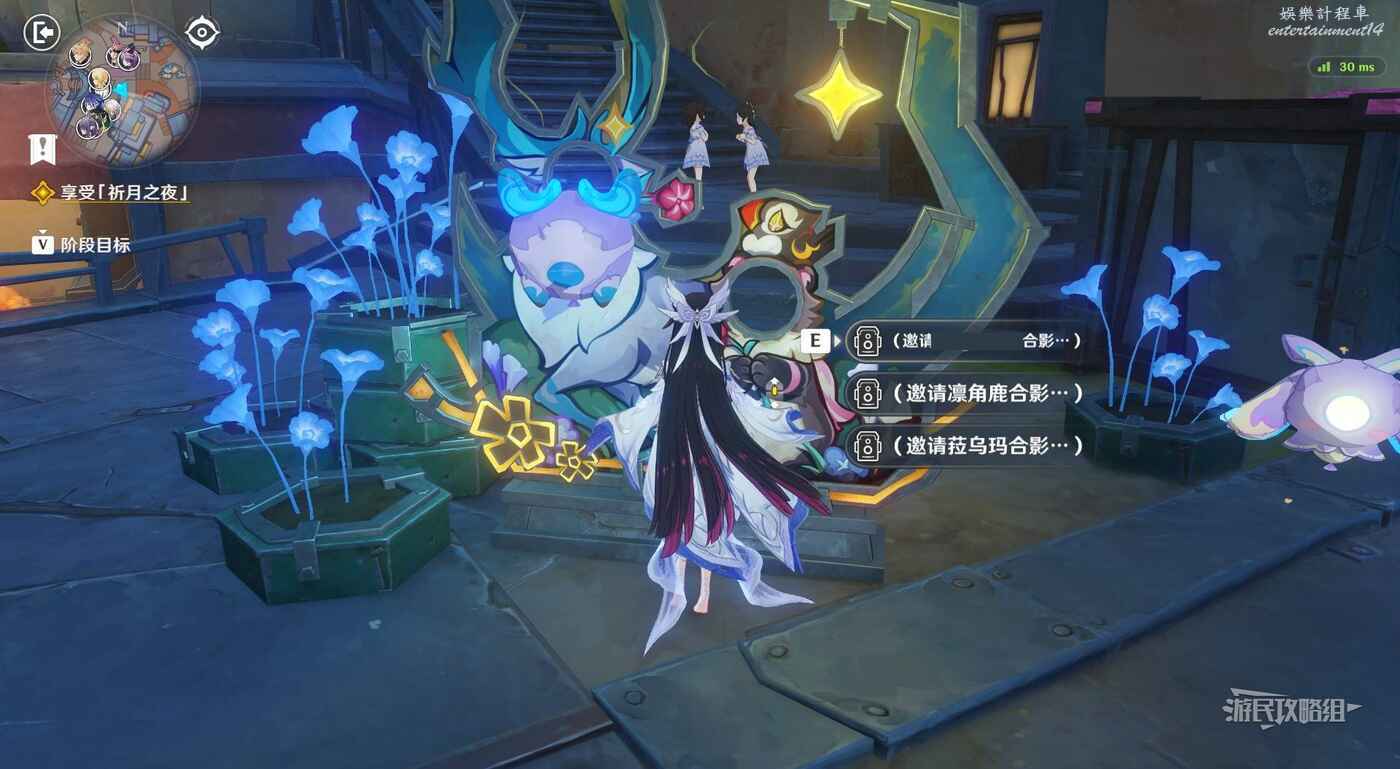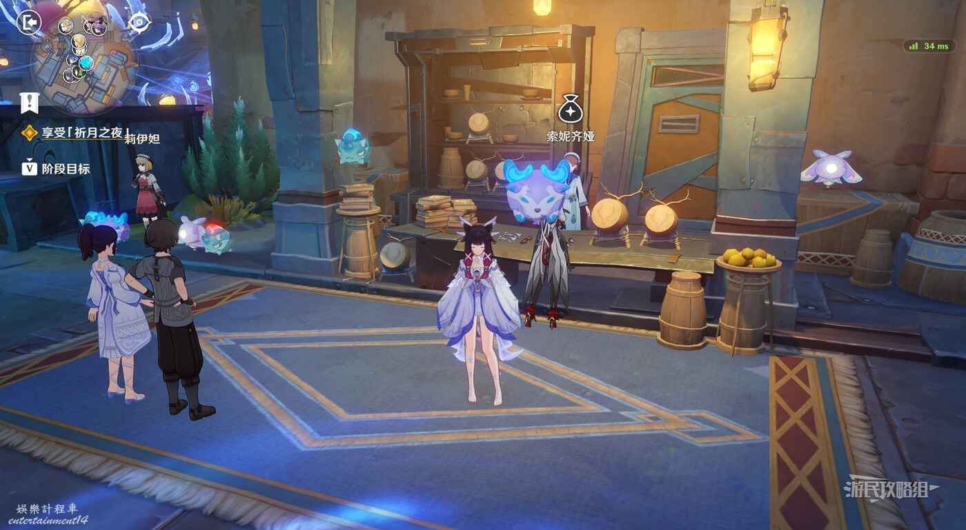 在廣場中間巨大的鹿旁邊可以看到9個顯像機關,與旁邊的利烏芭對話。開始挑戰後,等眼睛圖示移動到糖果的位置點擊【就是現在】即可完成小遊戲,總共有三輪,全部完成後可以獲得摩拉獎勵。