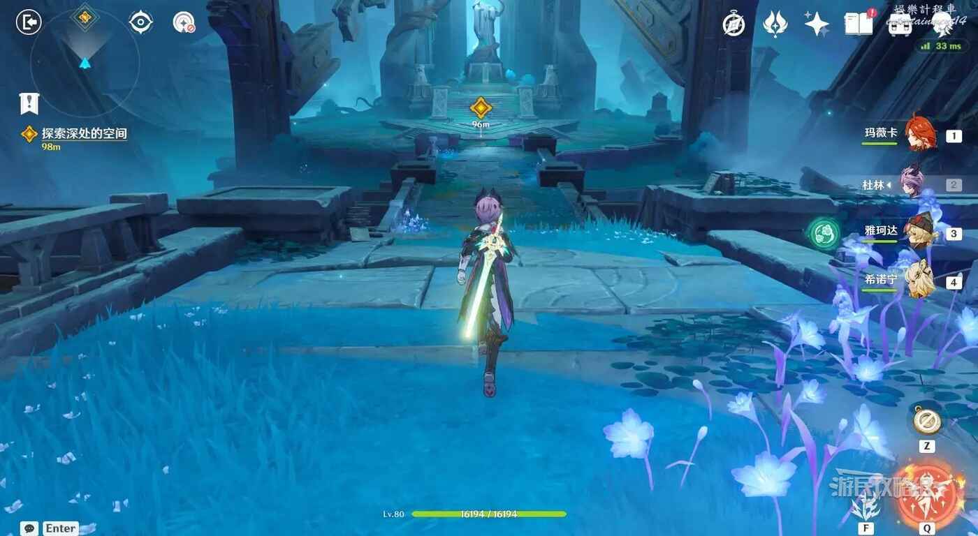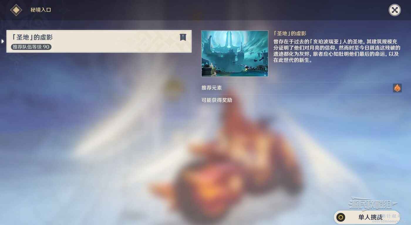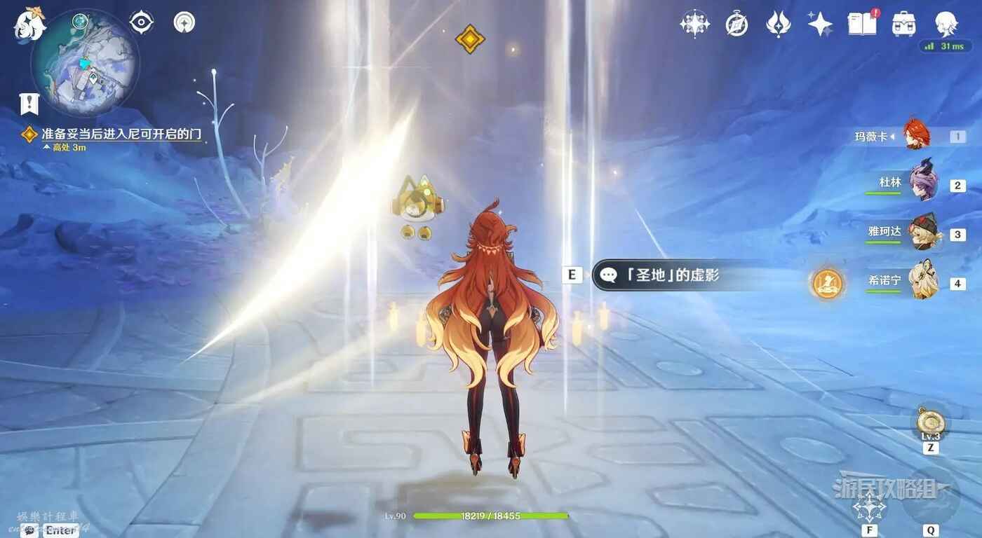 注意前方會進入秘境,秘境中包含戰鬥、4個寶箱和多個小遊戲,注意戰鬥中包含水史萊姆、水形幻靈等敵人,建議提前準備好適合戰鬥的陣容再進入。與【聖地的虛影】互動即可進入秘境。