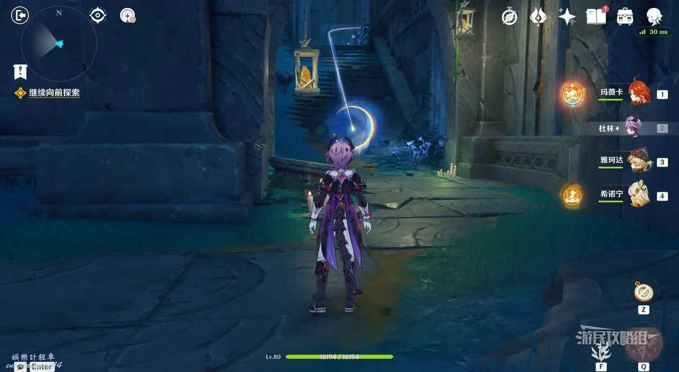 把藍球放在另一頭機關內之後,開啟前方石門,進入石門到達任務目標位置,觸發一小段動畫。