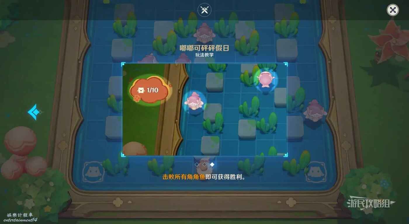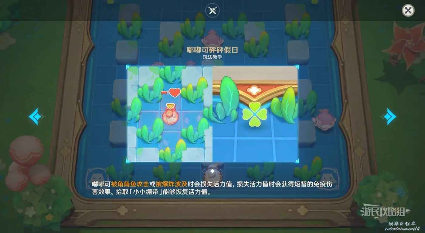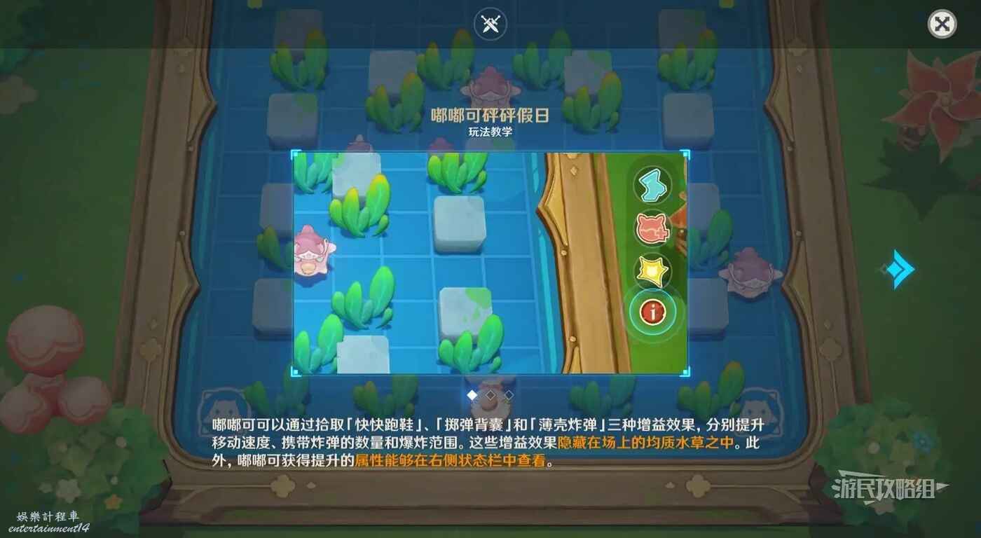艾莉絲的小遊戲類似泡泡堂,之前的活動裡出現過,放炸彈炸掉場地上的草和敵人即可。