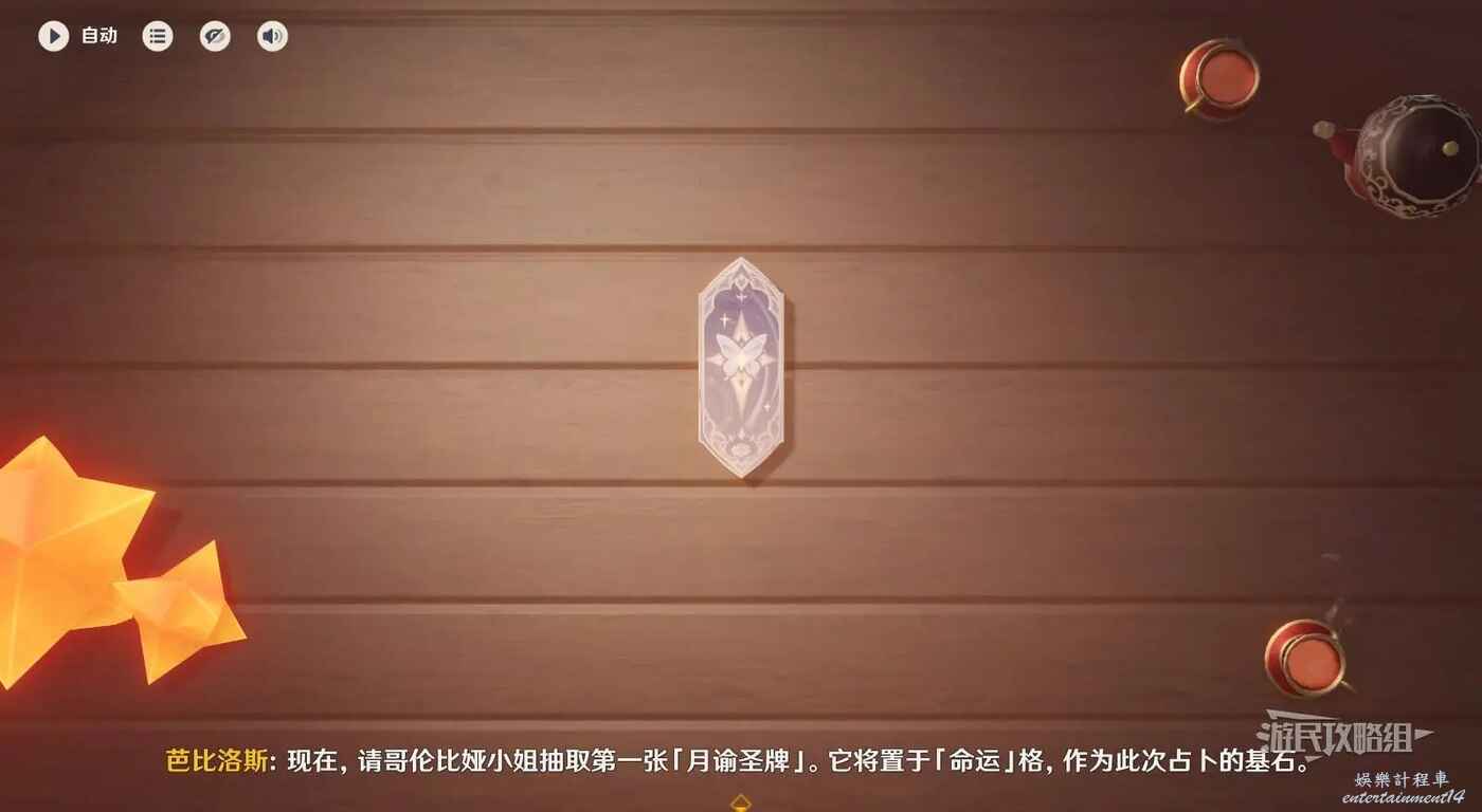 芭比洛絲的攤位是占卜,根據劇情提示與月諭聖牌互動並完成占卜即可。