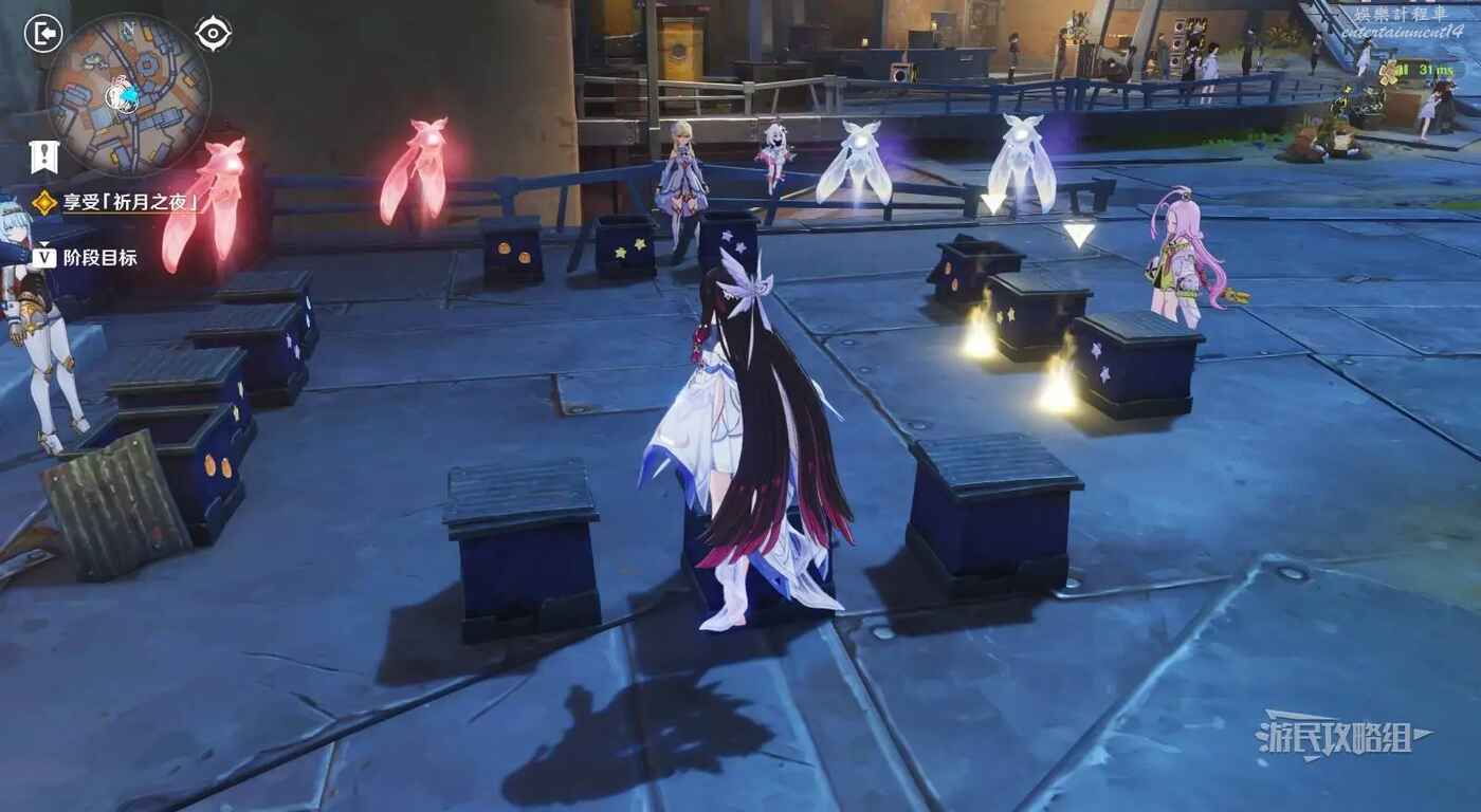 下面開始以哥倫比婭的視角開始遊玩各種攤位,遊玩攤位後,可以打開介面左側的階段目標,在左下角遊玩進度處領取原石等獎勵。