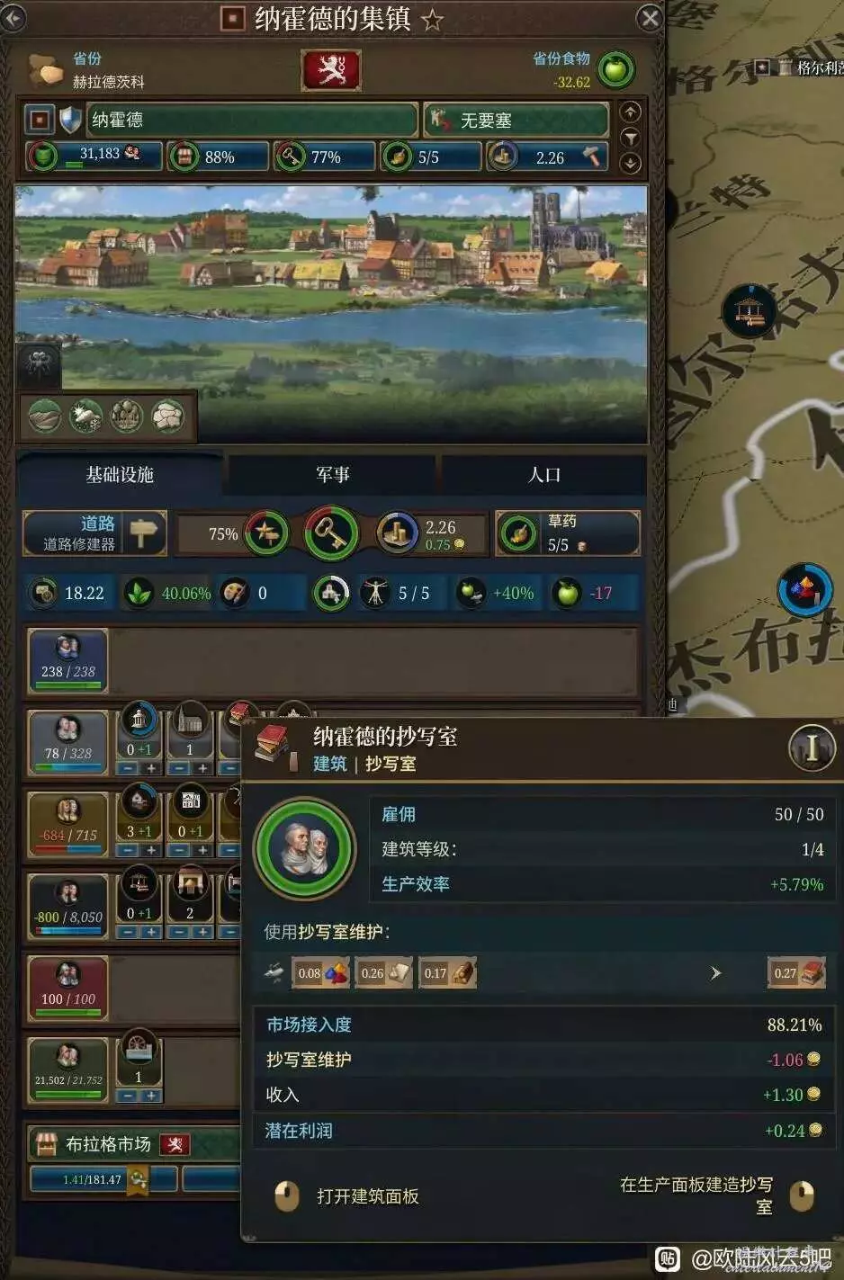個人主觀城鎮化的做法,除了建材類原產低於3塊的基本都搞城鎮化,比如一塊地本來有10個1.5塊的原產,因為生產過剩只值1塊錢,鋪十個不考慮接入度也才10塊,修了集鎮虧5塊錢原產,修貿易集市,大學,圖書館這些優勢明顯更大。食物問題在小冰期以前都不會有問題,頂多就是進口一些,進口食物的費用比起收益來說不值一提。