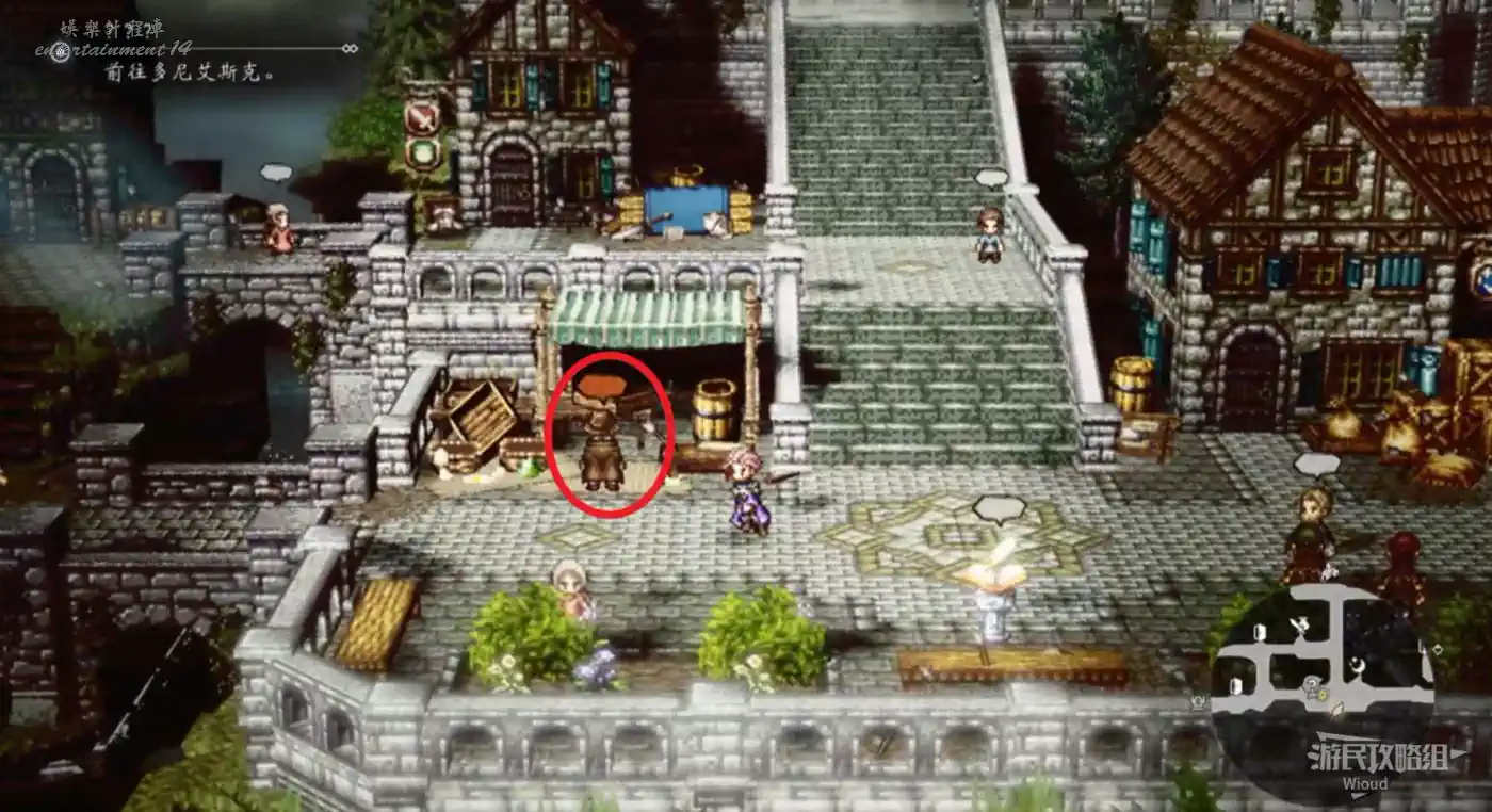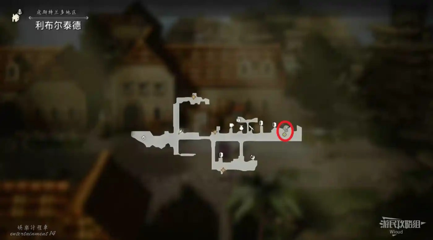 1、來到【利布林泰德】,移動到城鎮右側,和紅圈處的商人對話觸發劇情。