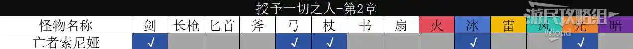 再次和【亡者索尼婭】對戰,以下是她的弱點資訊。