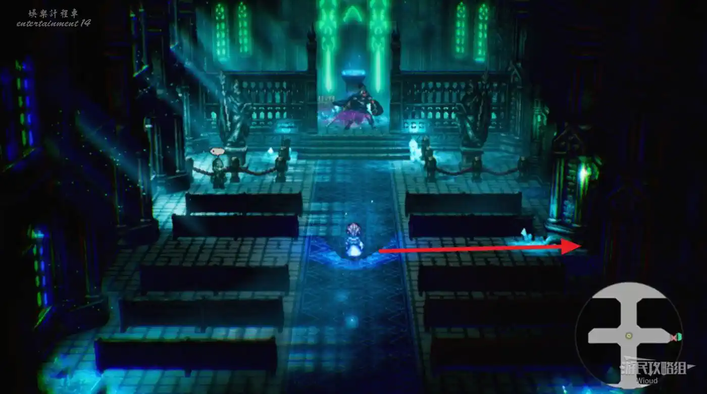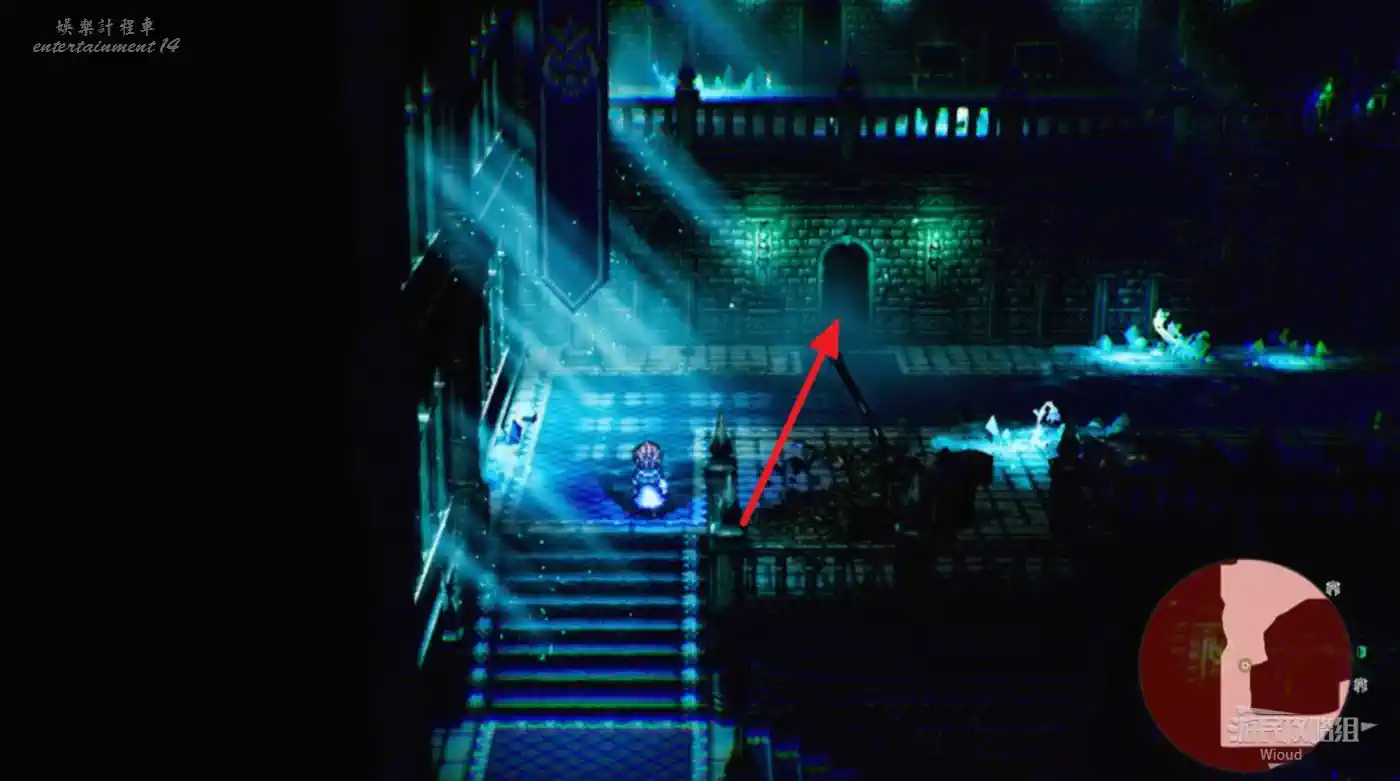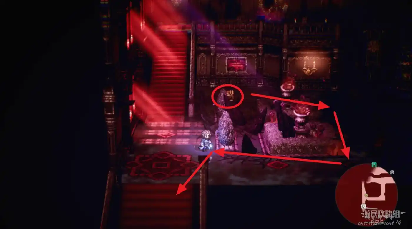 和右邊的藍色光球互動獲得【艾麗卡的詛咒之心·遺志】,往回走進城堡再沿著右側樓梯上3層。