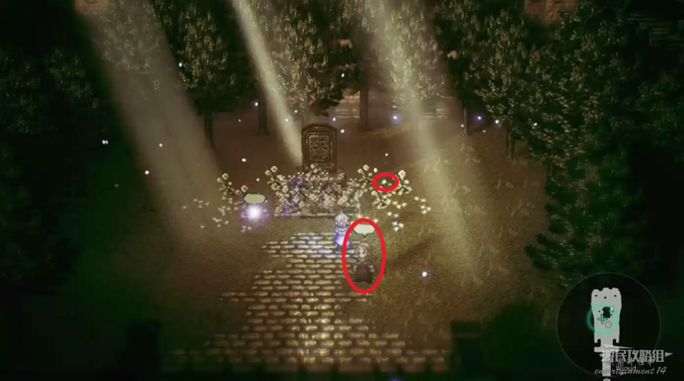 裡面的NPC可贏取【海市蜃樓帽子】與【帝國領巾】,墓地右側道具點可拾取【白色真絲手絹】,最後和左側的藍球互動。