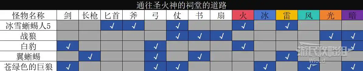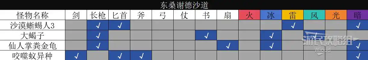 以下是【東桑謝德沙道】的怪物弱點分佈。
