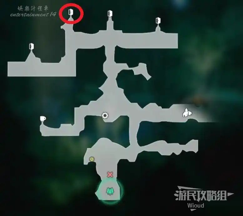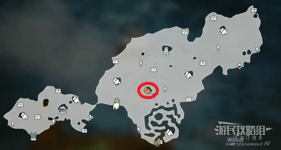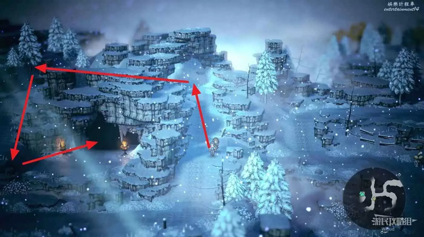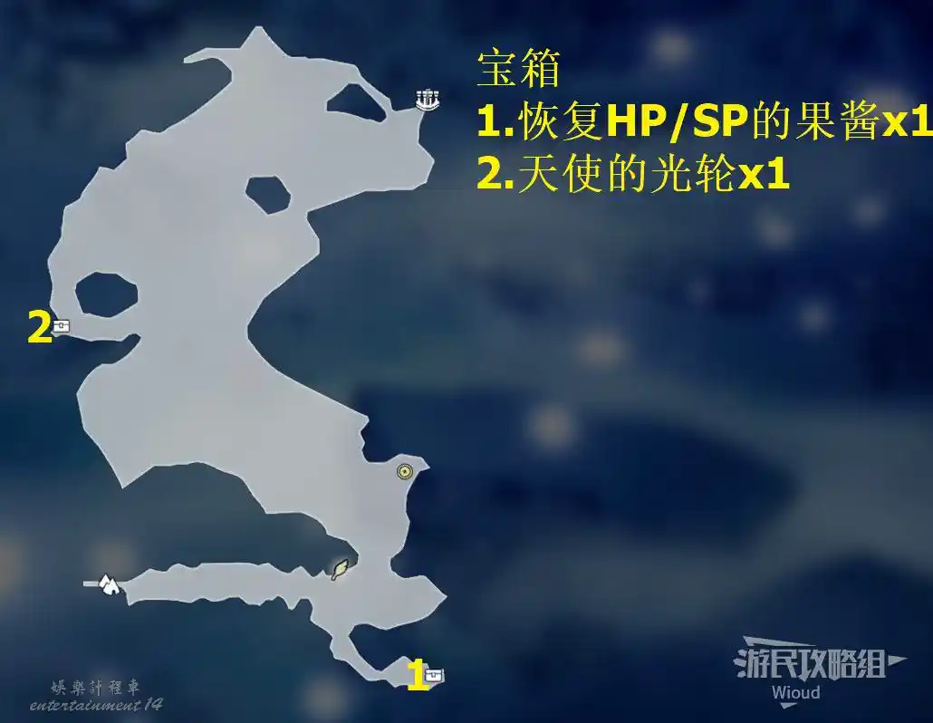 以下是【雪花晶洞穴】的寶箱位置,左上角的上鎖寶箱暫時無法打開,中上方的寶箱被強大的怪物守護,建議後續再過來。