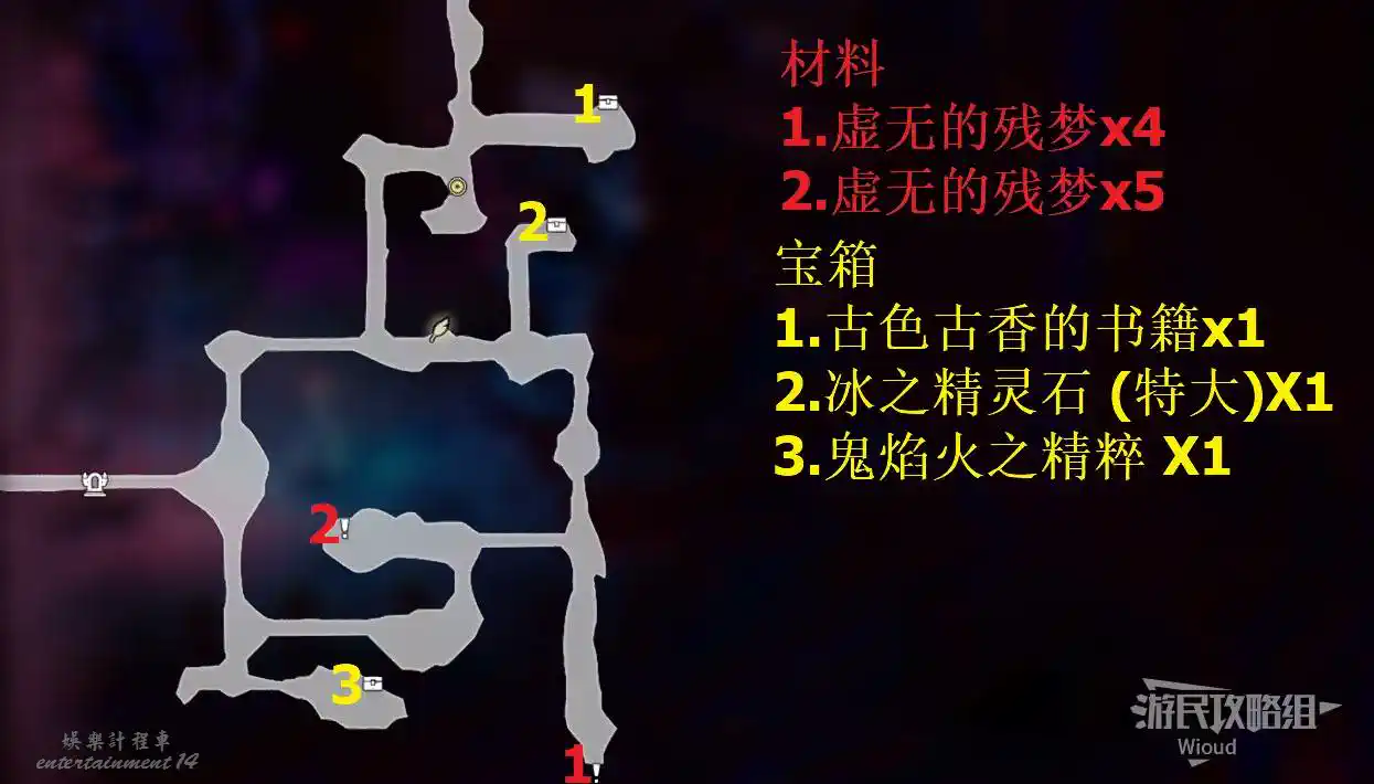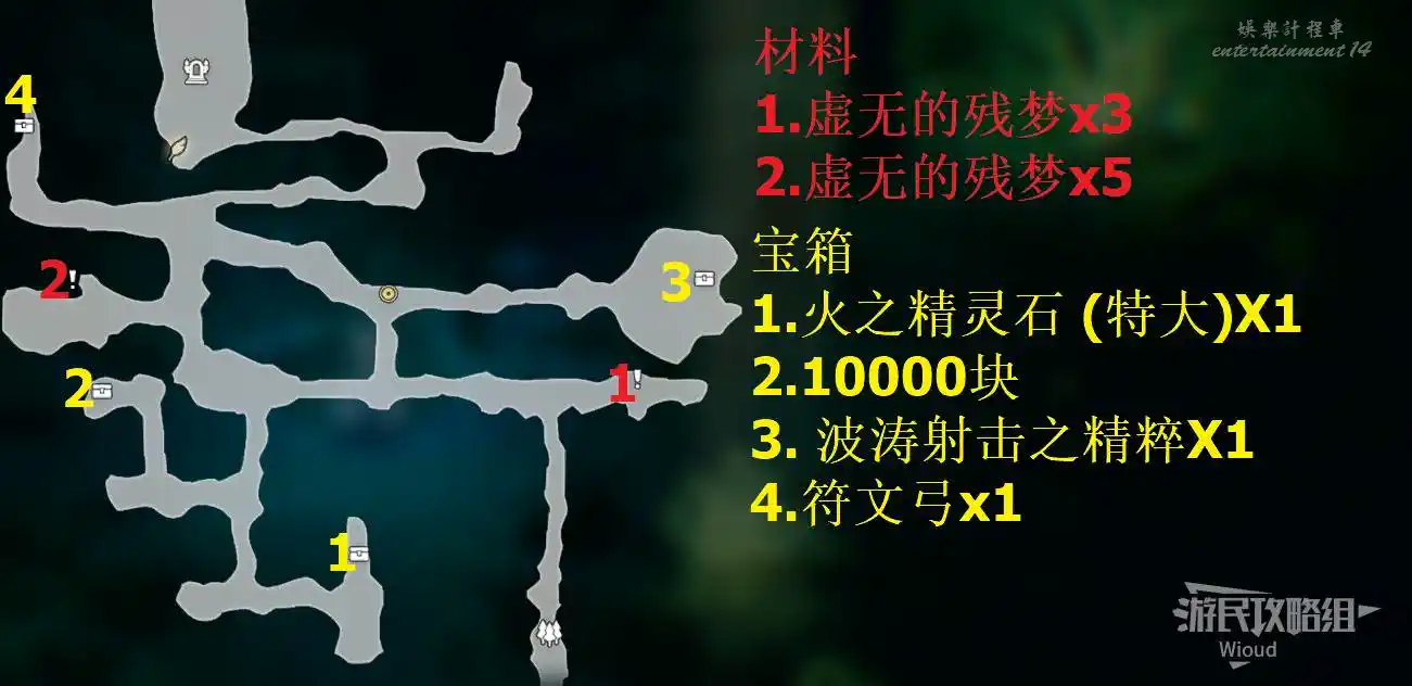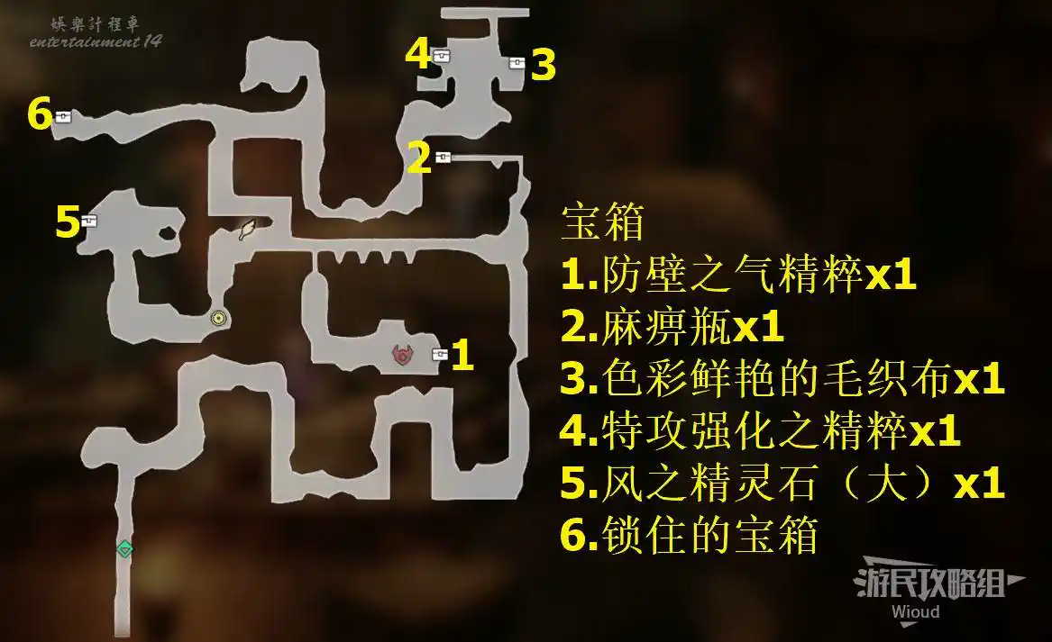 以下是【邊獄·瓦洛雷後方森林】的寶箱與材料分佈。