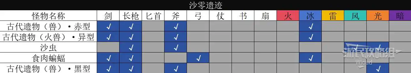 以下是【沙零遺跡】的怪物弱點資訊。