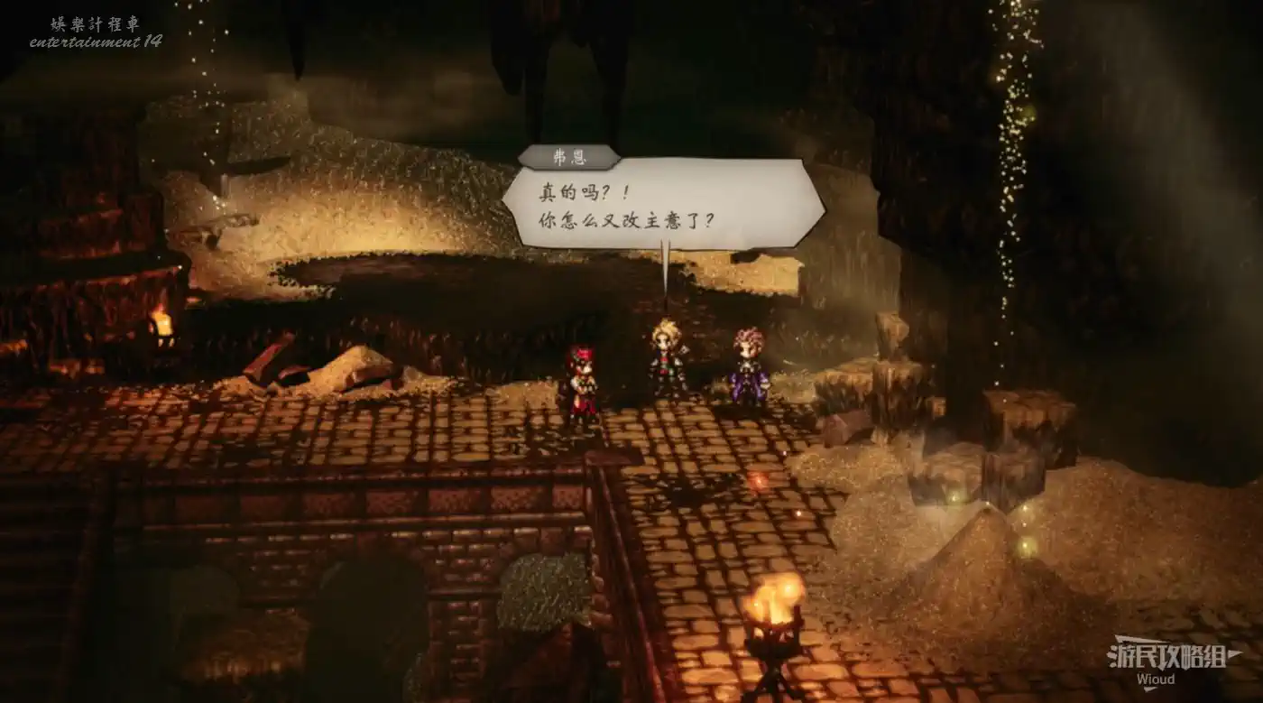 離開洞穴和洞口的NPC對話,得知弗恩的一些情報,二人準備再次回去找他。