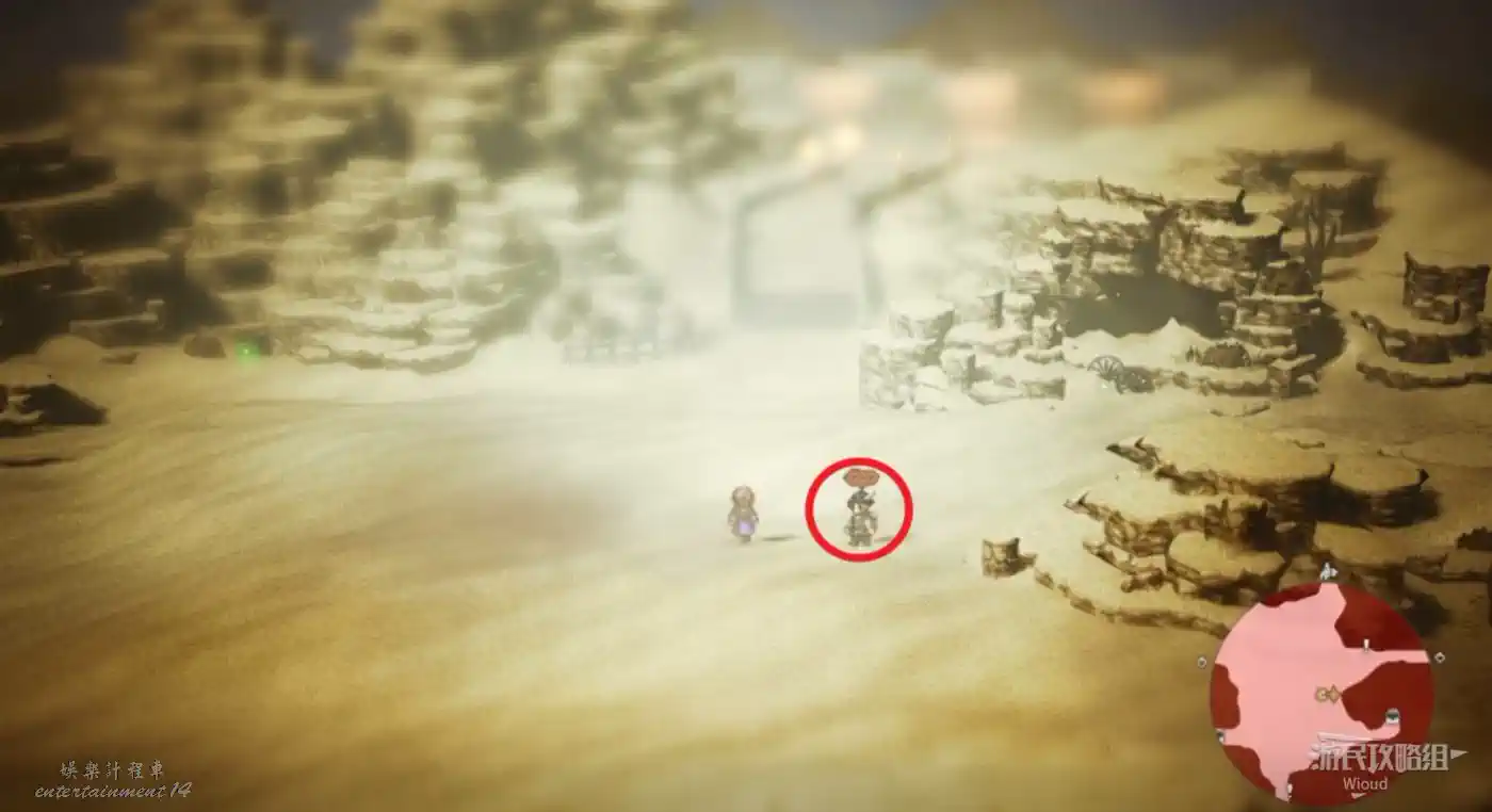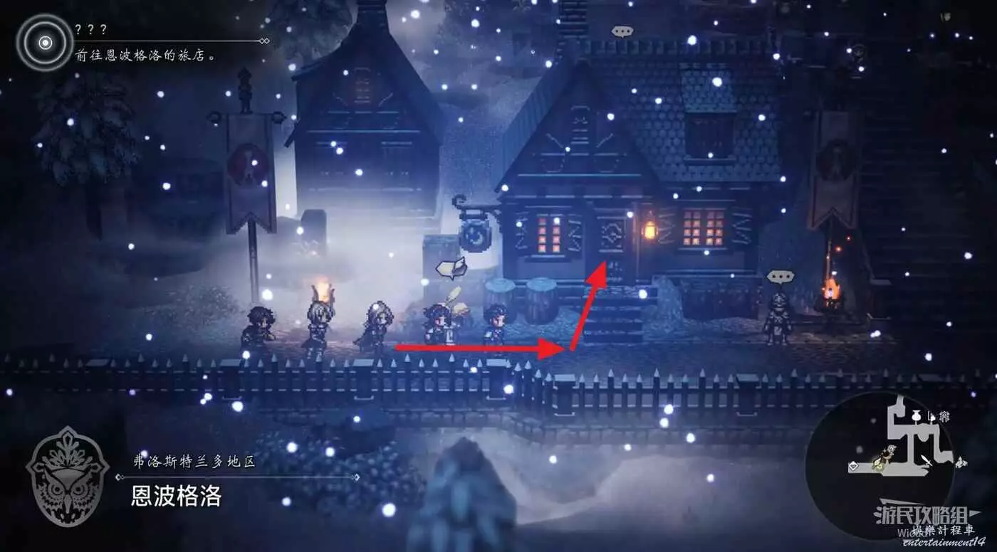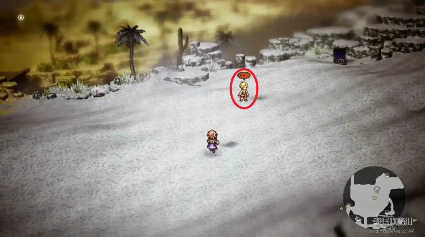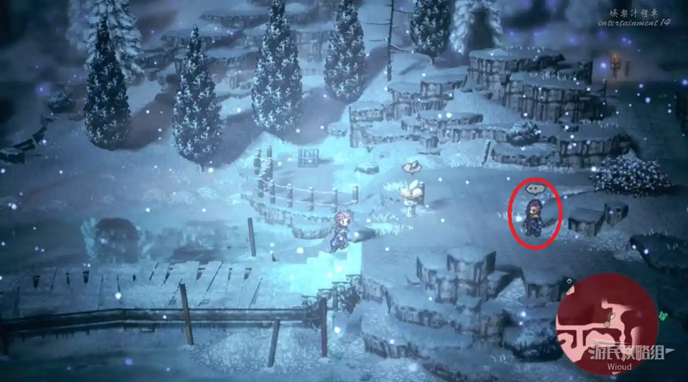開啟寶箱後,地圖右上角找到和怪物戰鬥的弗恩,和他一起擊敗所有的雪蜥蜴。