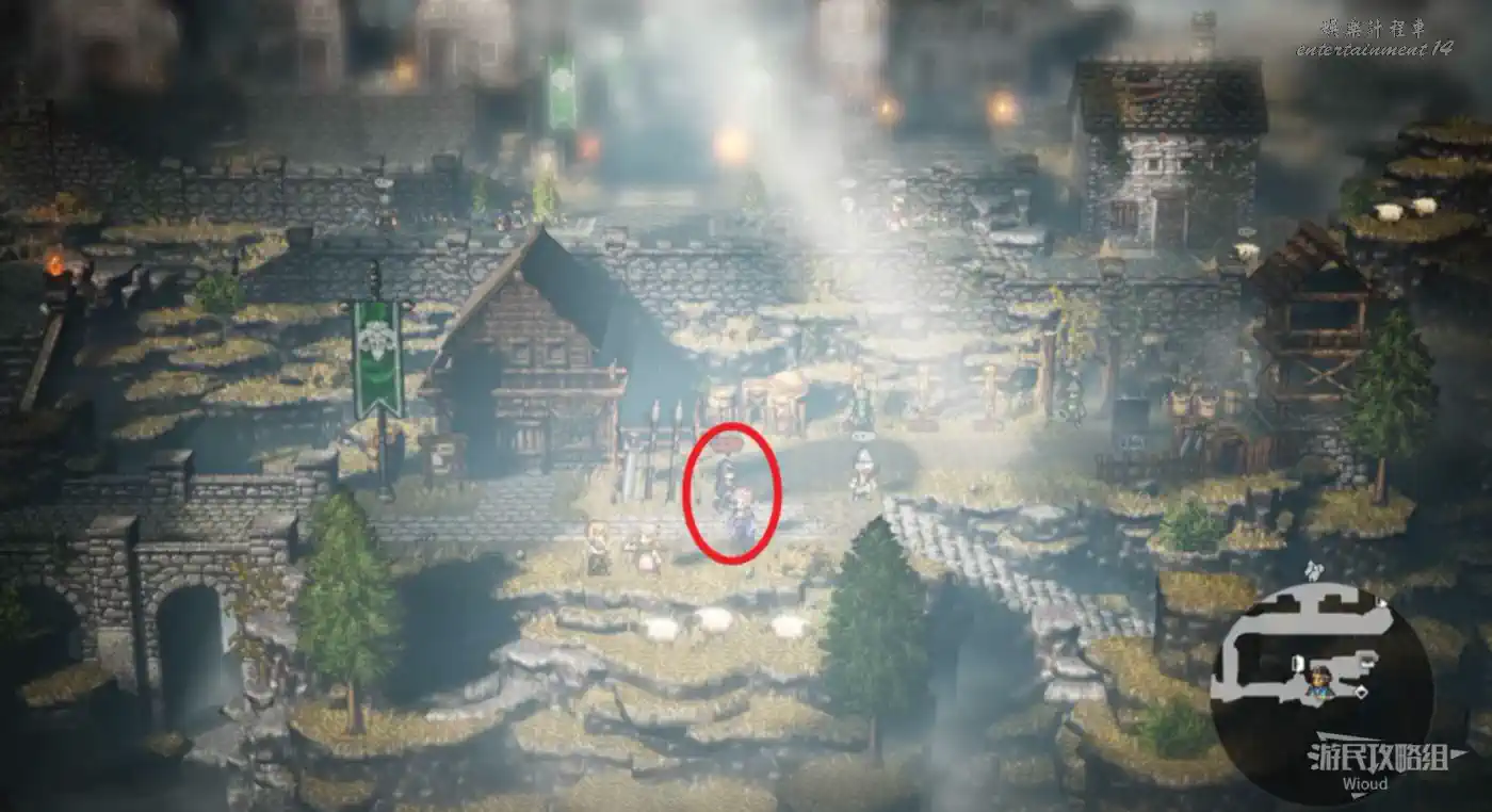 先往下圖紅圈所示的民宅走,和裡面的NPC【憤怒的娼妓】互動。