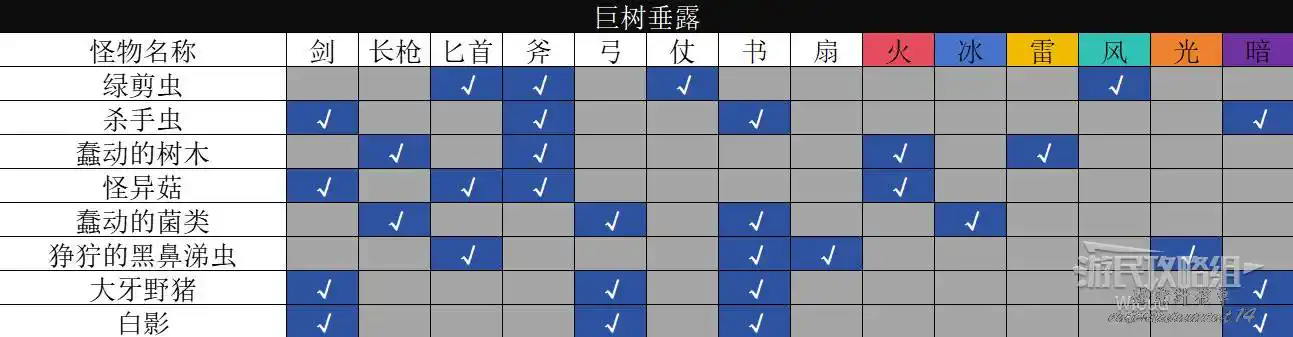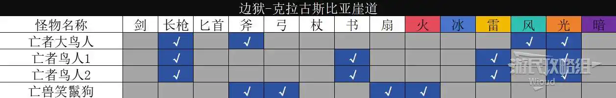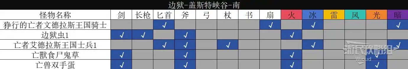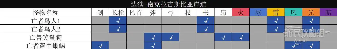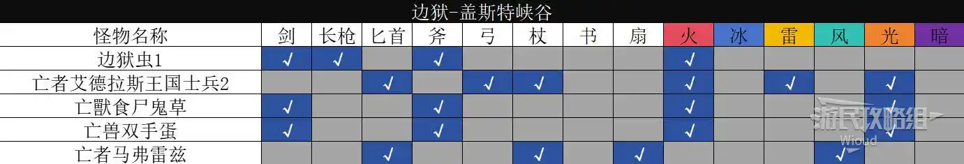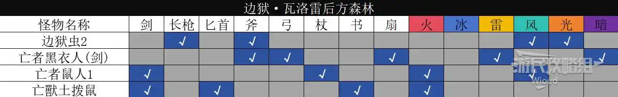 以下是【邊獄·瓦洛雷後方森林】的怪物弱點資訊。