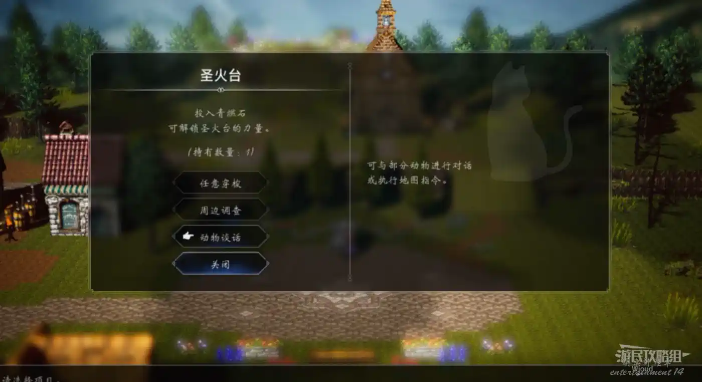 【維舒貝爾】聖火台投入【青燃石】解鎖【動物談話】。